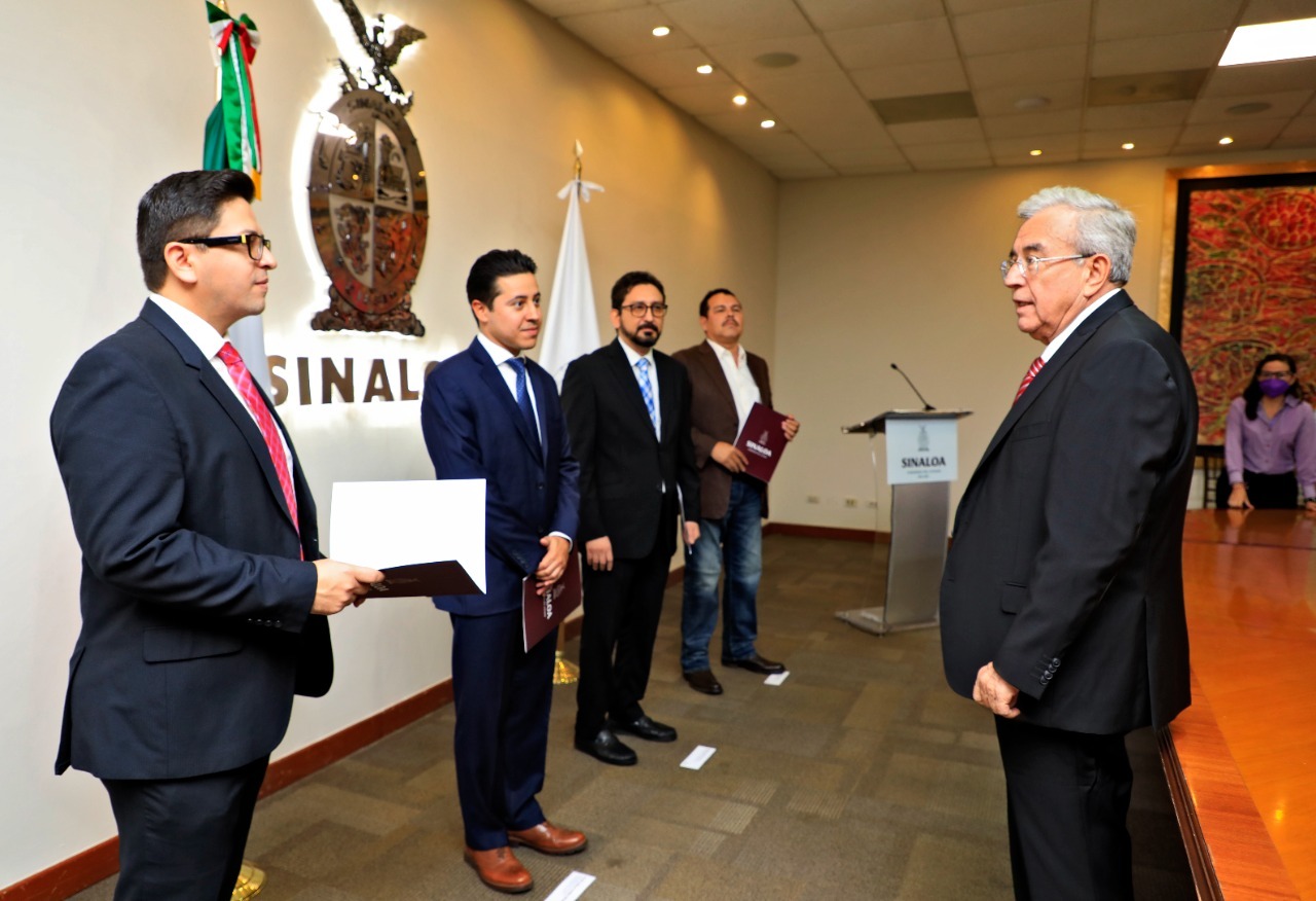 Luego del acto protocolario y entregarles personalmente a cada uno su nombramiento, el gobernador Rocha los exhortó a poner el mayor de sus esfuerzos y voluntad en esta encomienda que les confirió, para responder a la confianza que le otorgaron los sinaloenses a este gobierno, que implementará en Sinaloa la Cuarta Transformación que se propuso el presidente Andrés Manuel López Obrador.