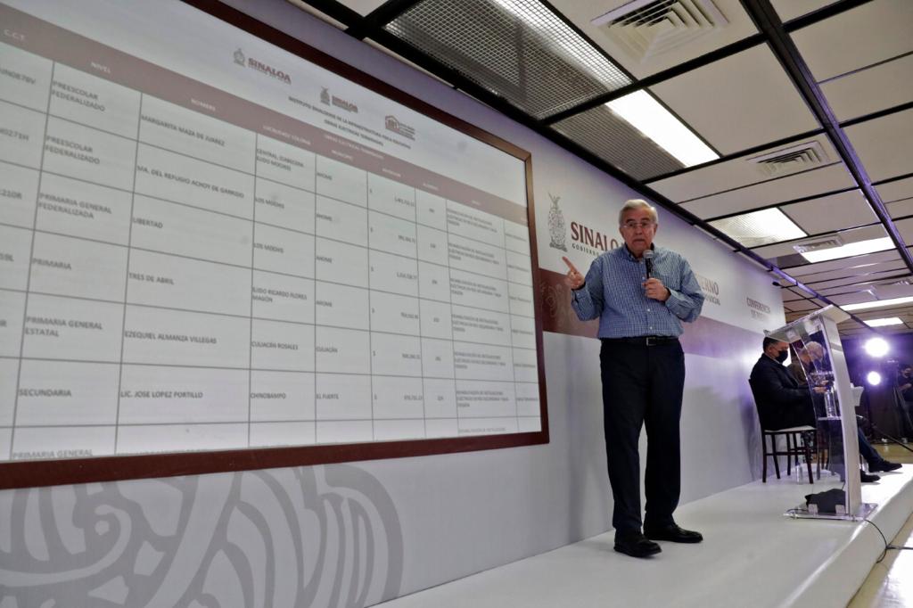 El gobernador Rocha presentó un informe detallado del número de planteles que ya fueron rehabilitados y los que están en proceso actualmente