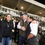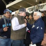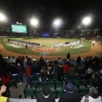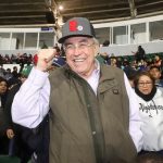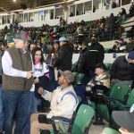 Guasave, Sinaloa, a 24 de enero de 2023.- A su arribo a las instalaciones del Kuroda Park, estadio anfitrión del tercer juego de la serie final de la Liga Mexicana del Pacífico, que está enfrentando a los Cañeros de Los Mochis contra los Algodoneros de Guasave, el Gobernador Rubén Rocha Moya fue abordado por aficionados de ambos equipos, quienes con visible emoción le pedían definirse por alguno de los dos equipos, a lo que con una amplia sonrisa respondió reiteradamente «Sinaloa es mi equipo», lo cual generó aplausos y risas de ambos bandos.