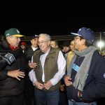 Acompañado por los Alcaldes de Guasave, Martín Ahumada Quintero y de Ahome, Gerardo Vargas Landeros, los aficionados fueron insistentes en preguntar al mandatario estatal sobre la posible asistencia del Presidente Andrés Manuel López Obrador a alguno de estos próximos juegos de la serie decisiva, a lo que comentó durante su reciente visita a la Ciudad de México, reiteró su invitación al Presidente de la República, quien le reconoció su interés por acudir, solicitándole echar porras a ambos equipos.
