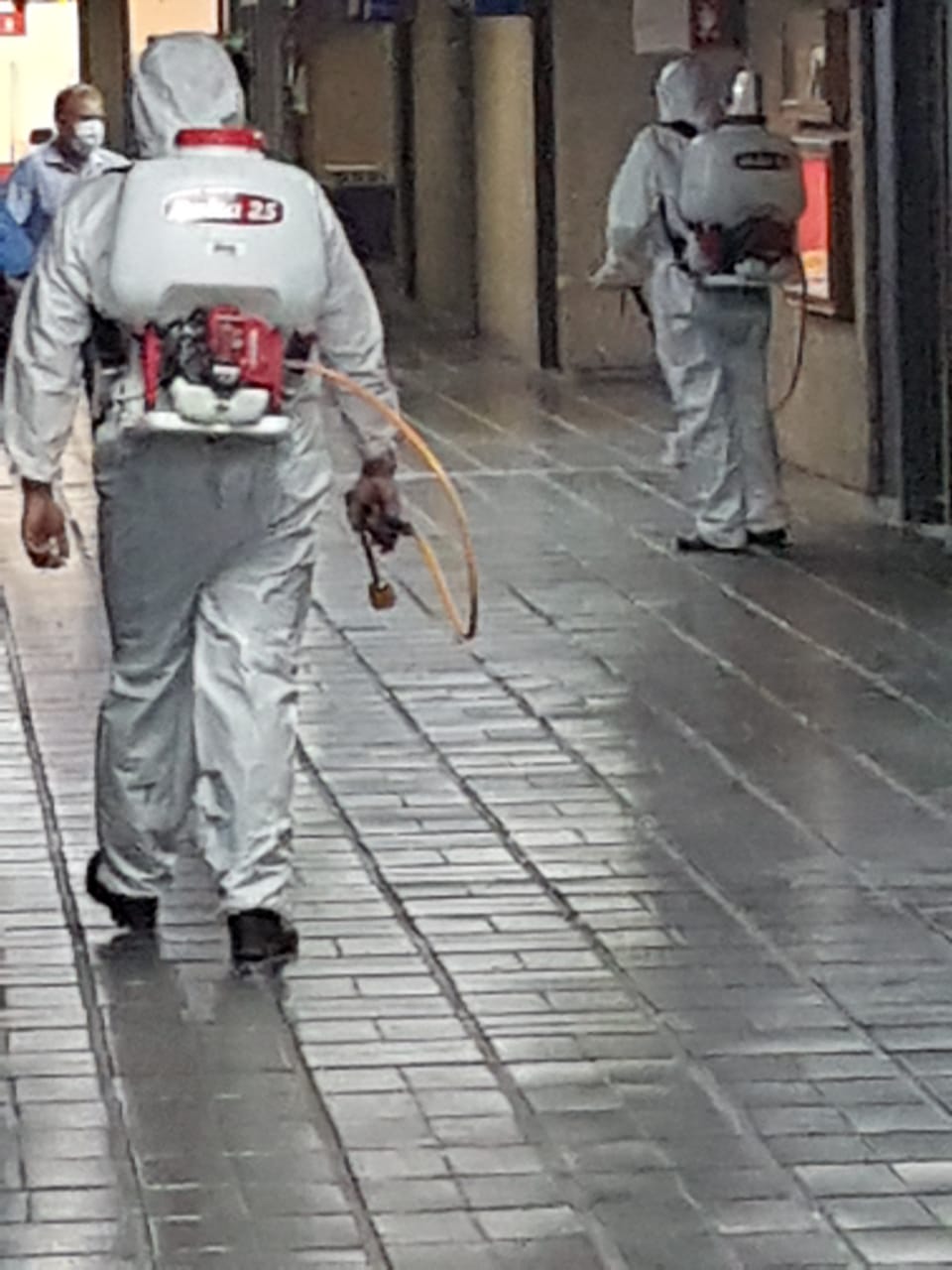 Culiacán, Sinaloa a 14 de abril de 2020.- El Gobierno de Sinaloa, a través de una coordinación interinstitucional que encabeza la Secretaría de Salud a través de la Comisión Estatal para la Protección contra Riesgos Sanitarios de Sinaloa (Coepriss), está implementando un intenso programa de sanitización y/o desinfección de espacios públicos, paradas de transporte colectivo y áreas urbanas donde hay flujo de personas en los 18 municipios de la entidad como parte de las medidas de emergencia sanitaria para detener la propagación del virus SARS-CoV-2, agente causal de la enfermedad COVID-19.