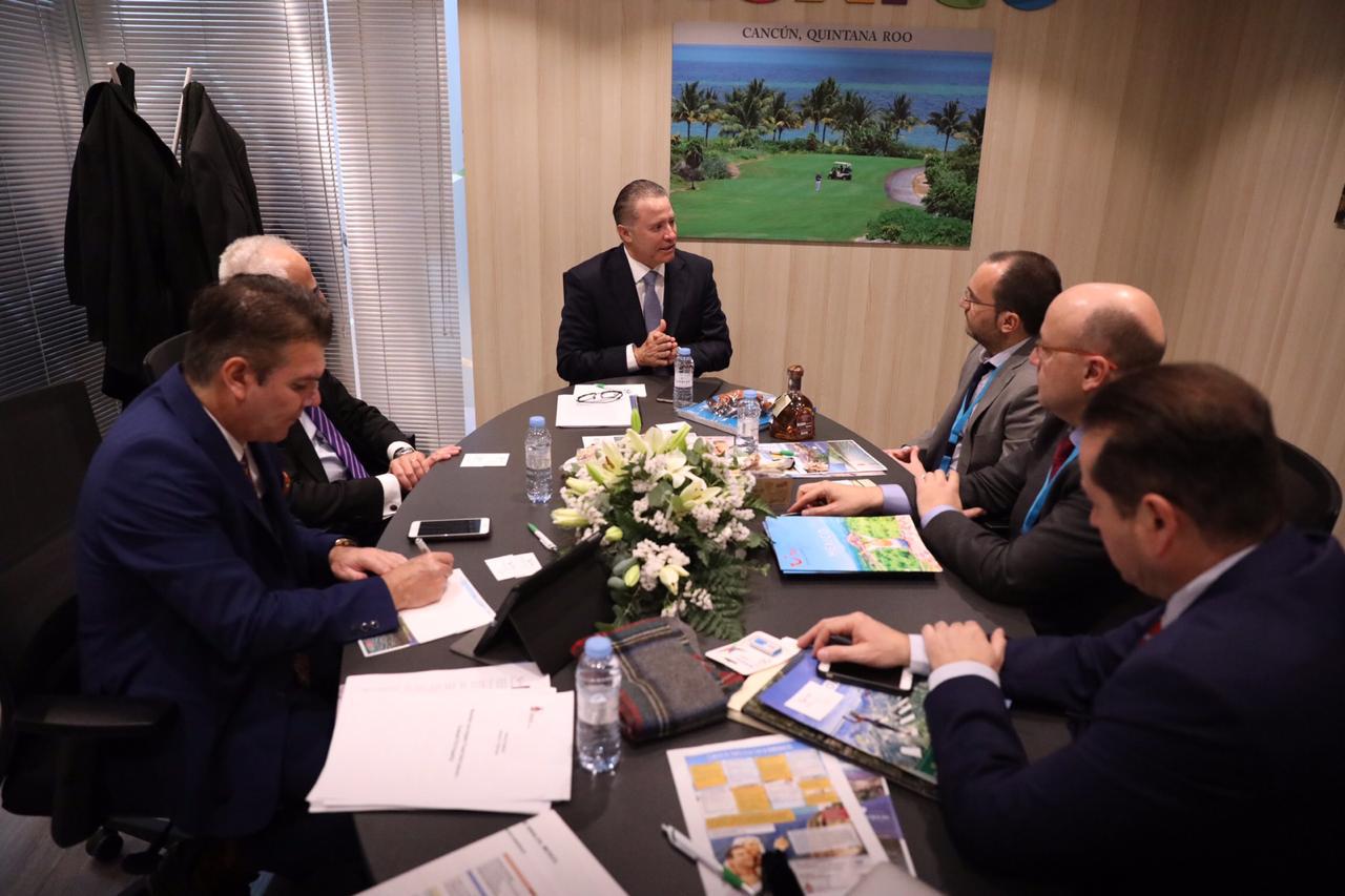 En el marco de la FITUR, el gobernador Quirino Ordaz sostuvo una reunión de trabajo con Eduardo Carranza y Germán Hijón Ballesteros, directores de Mercadotecnia y Productos de América de TUI España, el tour operador más grande del mundo con sociedades estratégicas con el Grupo RIU de España y Sunwing de Canadá.