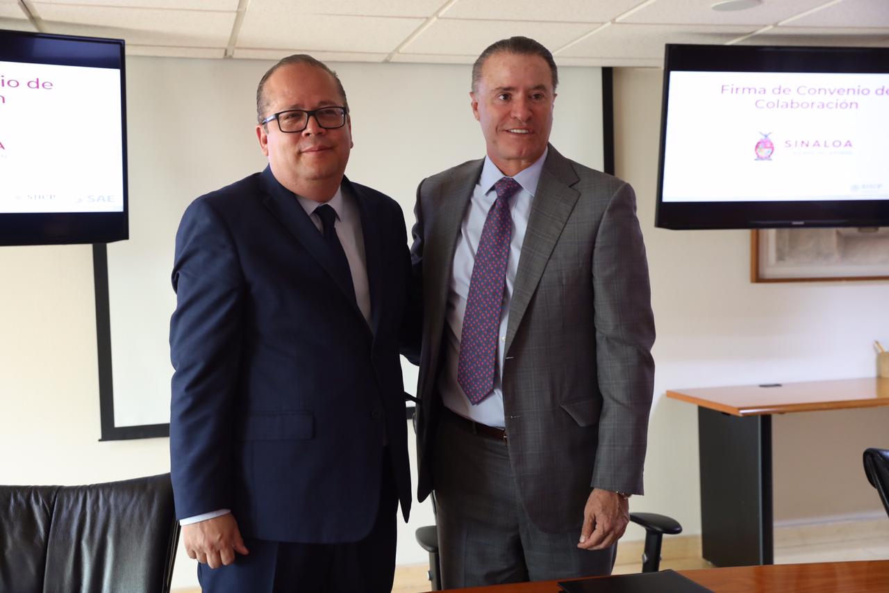 Ciudad de México; a 23 de mayo de 2019.- Al firmar un convenio de colaboración con el titular del Servicio de Administración y Enajenación de Bienes, Ricardo Rodríguez Vargas, el gobernador Quirino Ordaz Coppel anunció que a través de esta institución el Gobierno de Sinaloa subastará la Casa de Gobierno, con la garantía de que el SAE es transparente, ágil y eficiente en sus mecanismos.