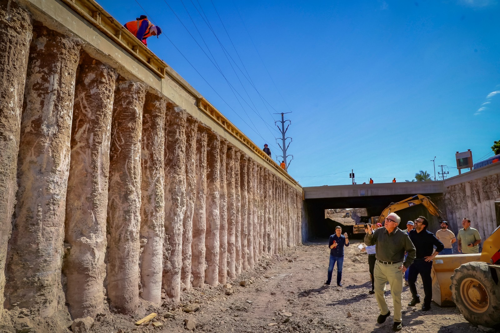 Durante su visita de supervisión al paso deprimido, el gobernador Rocha corroboró que el túnel ya quedó concluido, debidamente soportado por 580 pilotes rellenados de concreto y armex, que soportarán la cinta asfáltica superior, y sólo resta echar el concreto hidráulico al piso del túnel, que será una vialidad de cuatro carriles, con un camellón central divisorio, similar al que se construyó frente a la UAdeO.