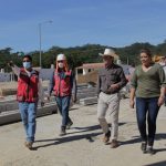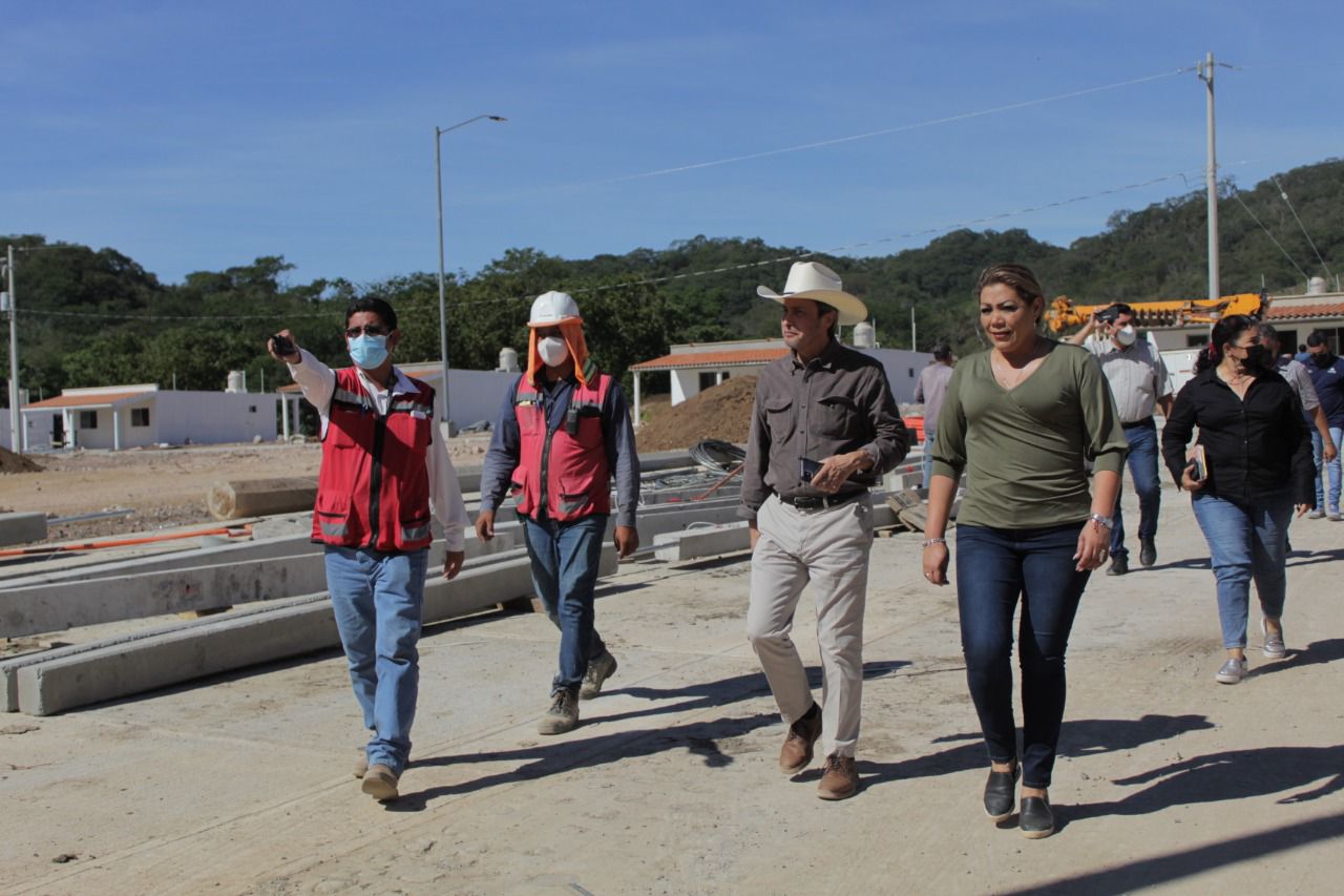 En un recorrido a pie, tanto el subsecretario como la presidenta, revisaron cada una de las construcciones del nuevo pueblo. Son notorios los avances casi en su totalidad de las viviendas. Empedrado de la calle principal, la plazuela y kiosco casi concluyen, así como el complejo educativo de escuela e iglesia.