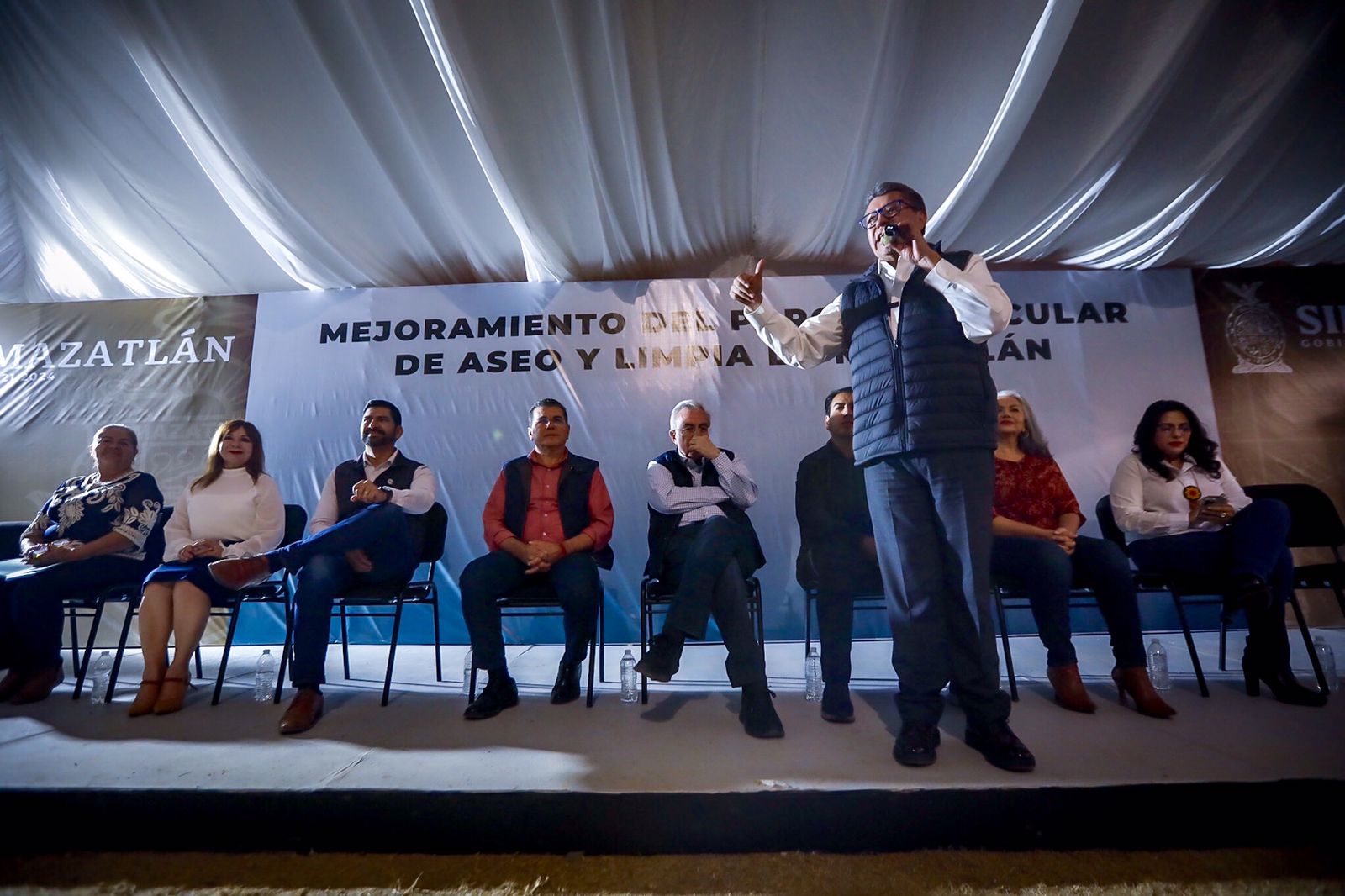 «Hace unos cuantos meses que tome este importante cargo y una de las principales recomendaciones del Gobernador fue precisamente atender los problemas fundamentales del pueblo de Mazatlán y los problemas fundamentales tienen que ver principalmente con los servicios públicos, con el alumbrado público, con la recolección de basura, con el tema de la regularización de los predios, con la electrificación, el agua potable, las pavimentaciones de muchas colonias que están añorando que se les haga justicia», comentó el Presidente Municipal.