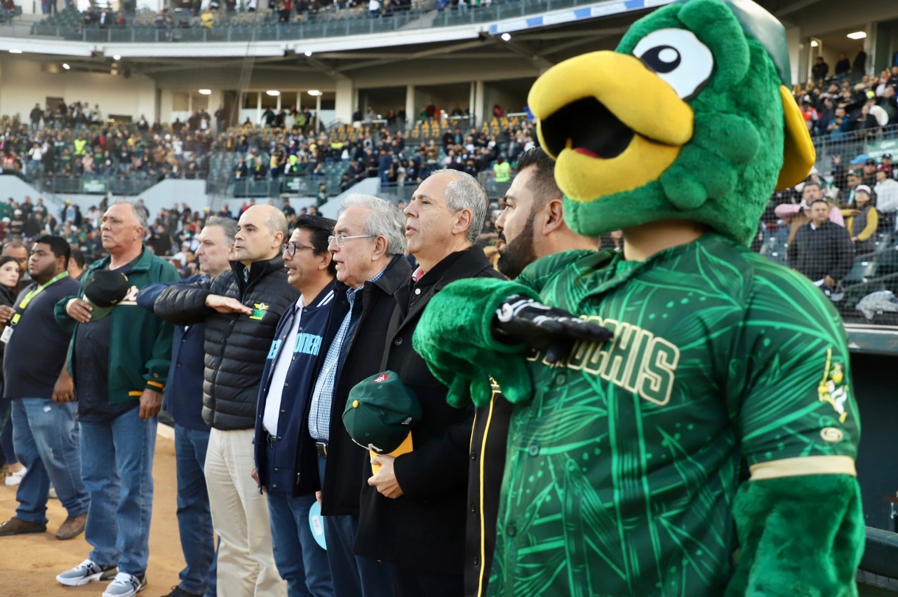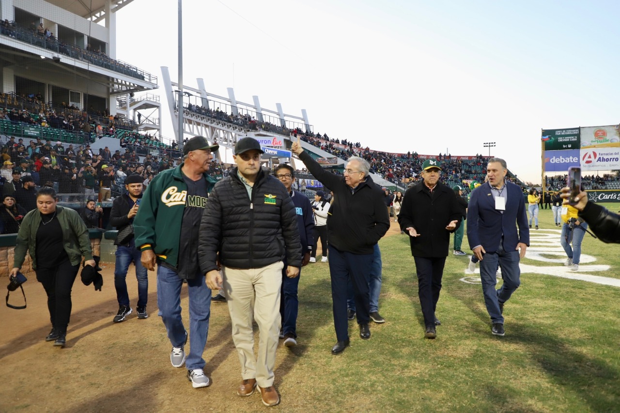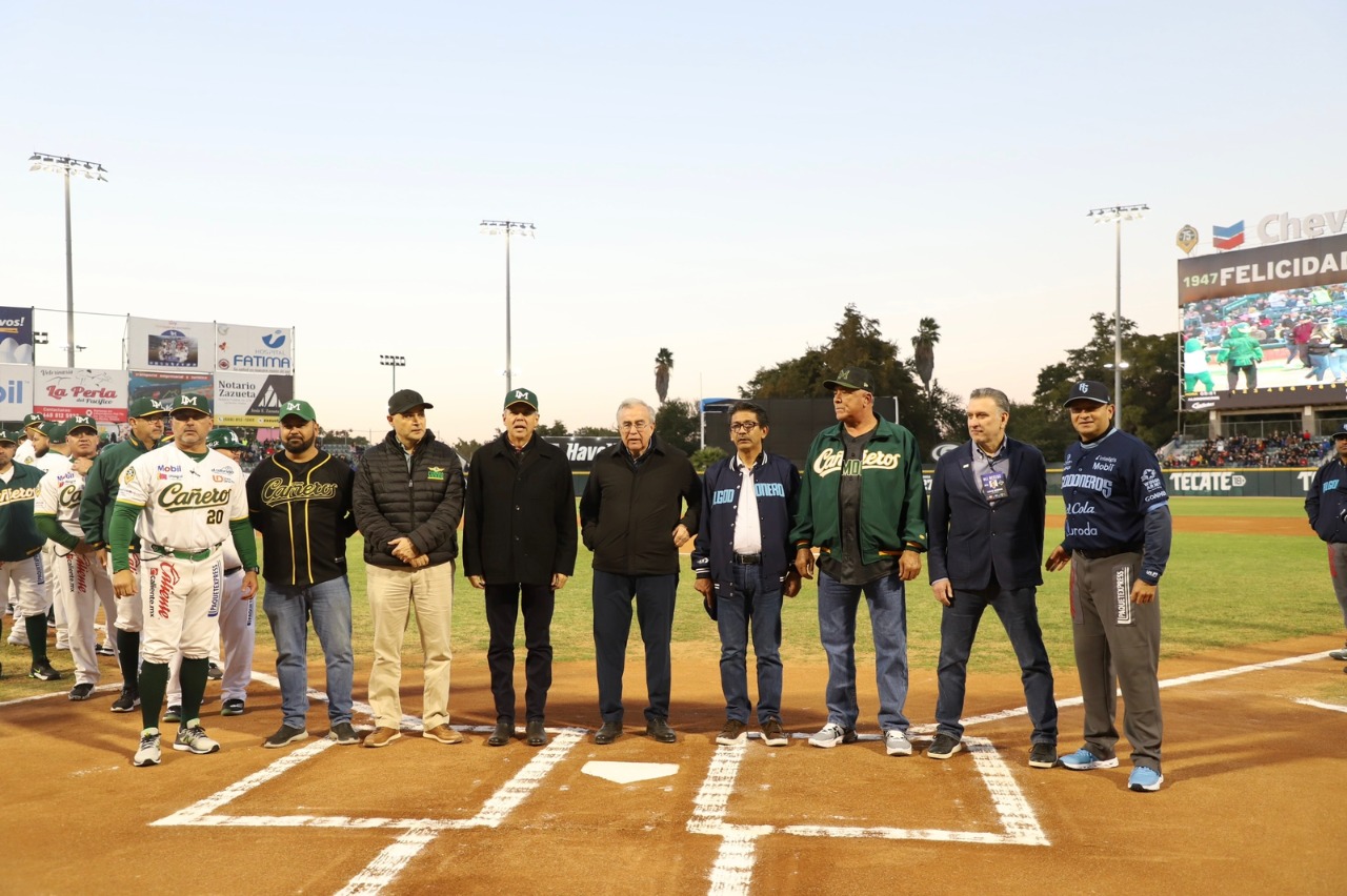 Tras realizar los honores a la bandera, se cantó el Play Ball con el cual inició la serie final de la máxima fiesta del béisbol, por lo que el Ejecutivo Estatal acudió a su butaca, junto a los alcaldes de Ahome, Guasave y El Fuerte donde disfrutó del emocionante arranque de esta serie final que promete llenar las más amplias expectativas.