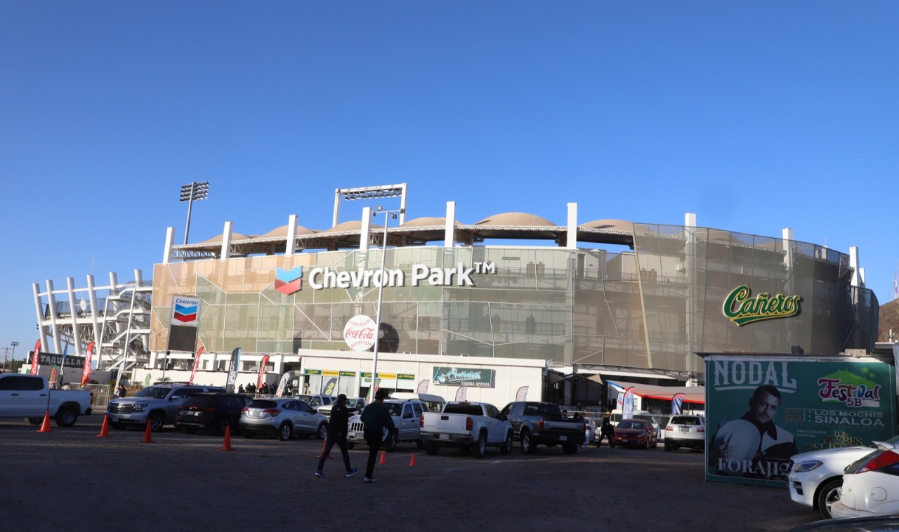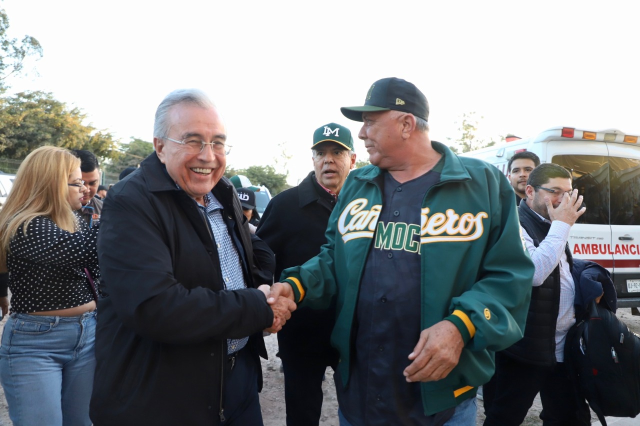 Durante su arribo al Estadio «Emilio Ibarra Almada», el mandatario estatal aprovechó para saludar y convivir con la afición que ingresaba en ese momento para disfrutar del espectáculo de esta fiesta beisbolera.