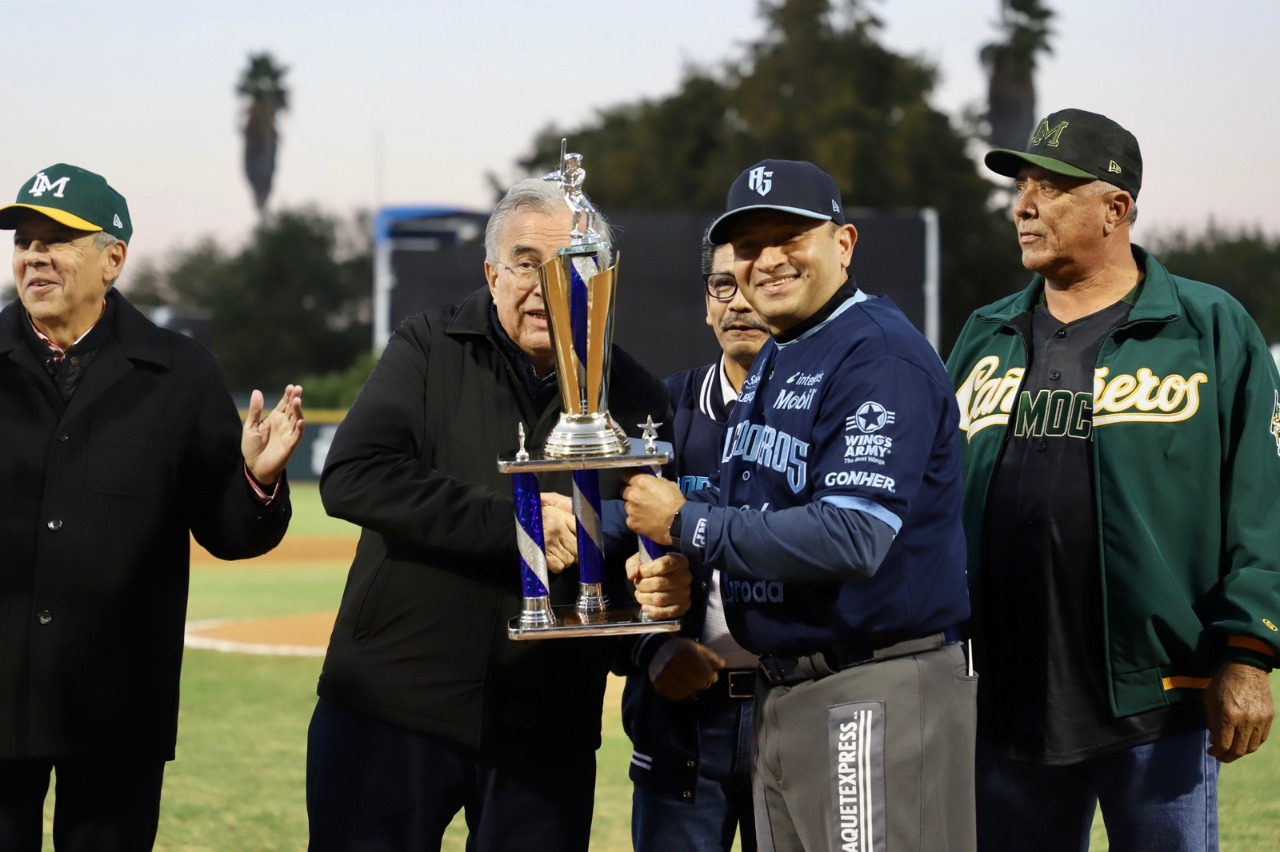 Ante un estadio repleto, en un total ambiente festivo y familiar el Gobernador también hizo entrega de las dos copas que obtuvieron respectivamente las escuadras de Los Mochis y de Guasave, quienes participaron en la final de la Copa Gobernador, celebrada meses atrás en la ciudad de Guamúchil y donde se enfrentaron los 4 equipos profesionales del béisbol sinaloense. Los galardones fueron recibidos por los managers de ambas escuadras, José Moreno de Cañeros y Óscar Robles de Algodoneros.