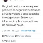 “He girado instrucciones a que el gabinete de seguridad se traslade a Puerto Vallarta y encabecen las investigaciones. Estaremos informando sobre lo sucedido en las próximas horas”, añadió el gobernador.