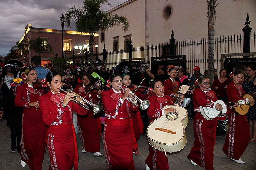 Durango se vistió de color la noche del sábado. En la Plaza de las Armas, se llevó a cabo un desfile de catrinas que recorriendo los alrededores de la catedral.
