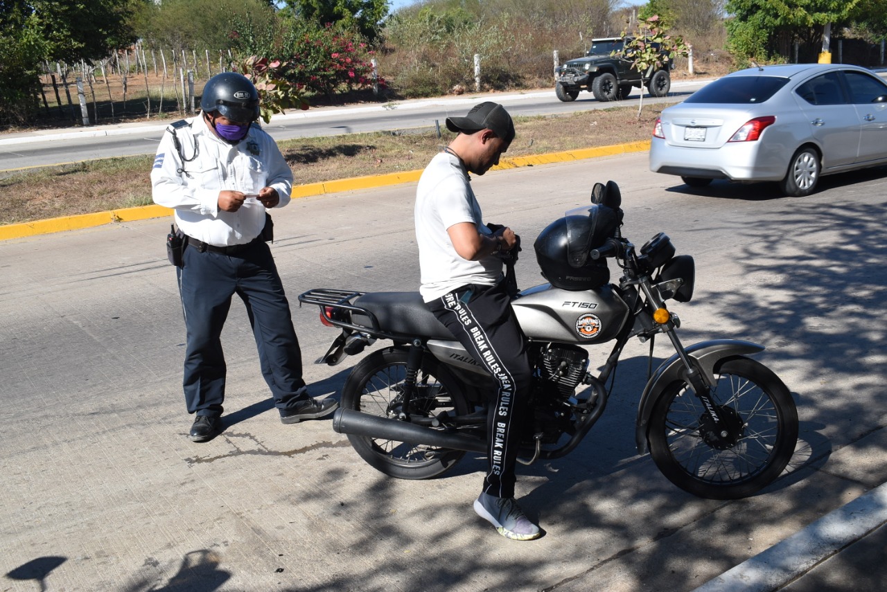 Refirió que cada semana, los agentes viales elaboran un promedio de 50 boletas de infracción principalmente por no usar casco de seguridad en los motociclistas, y que a diario se detienen de 2 a 3 unidades, entre otro factores, por exponer la vida de terceras personas al llevar más de 2 personas a bordo.