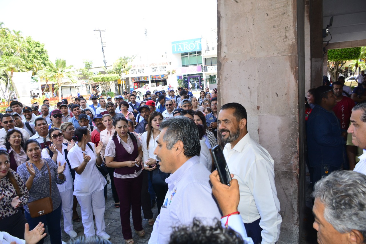 Flores Segura, expresó ante decenas de trabajadores sindicalizados que el Alcalde, Luis Guillermo Benítez Torres, ha dado la instrucción de tener un respeto estricto a los derechos laborales de las personas, por lo que cada mes se dará seguimiento a los temas pendientes en mesas de trabajo en las que participarán todas las áreas del Gobierno Municipal y el propio sindicato