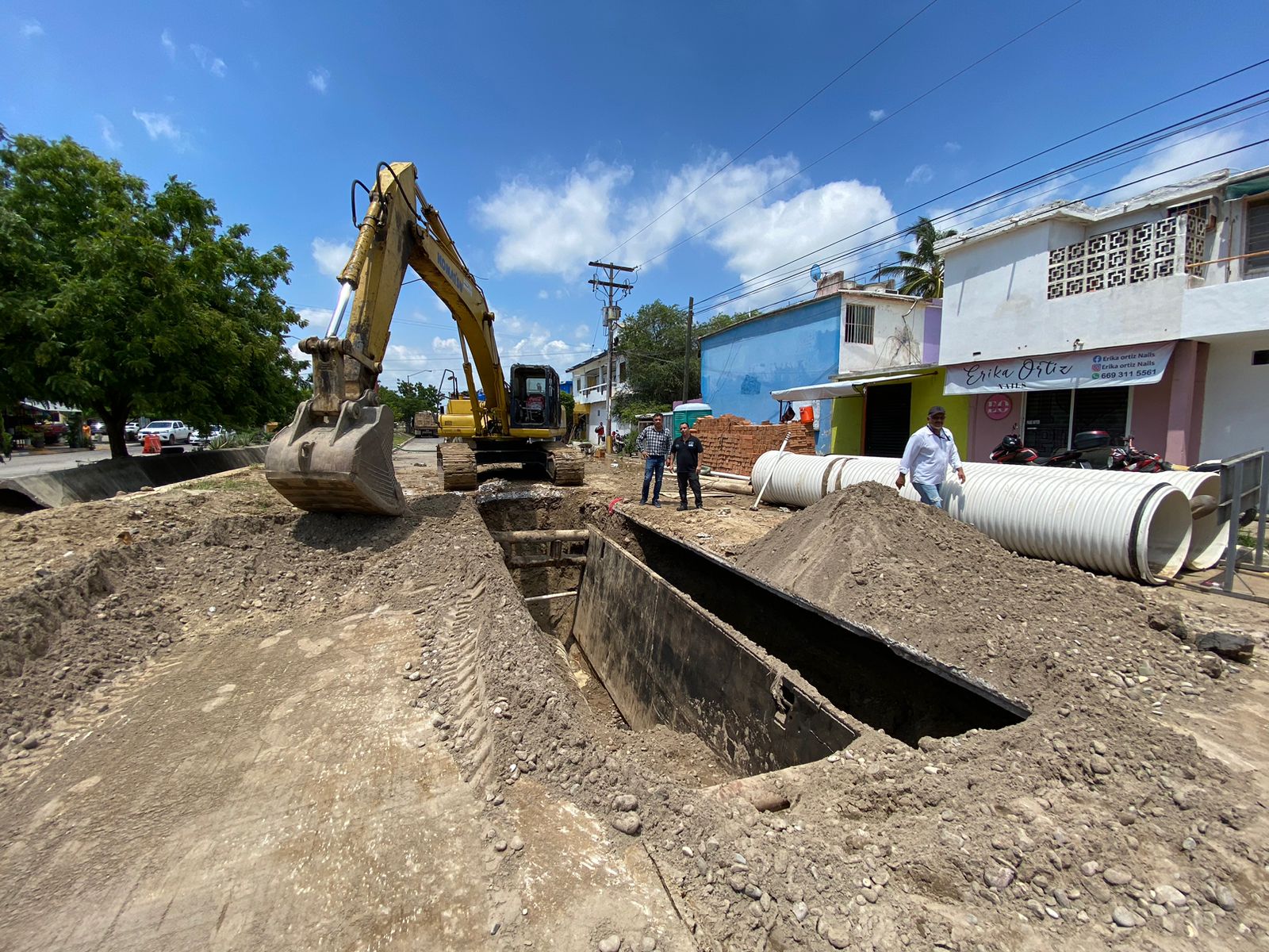 Mazatlán, Sinaloa a 05 de agosto de 2023.- A dos días de que el Alcalde Edgar González dio el banderazo de arranque de la reposición de un tramo del Colector Delfín en el Infonavit Francisco Alarcón, los trabajos presentan ya el 9 por ciento de avance.