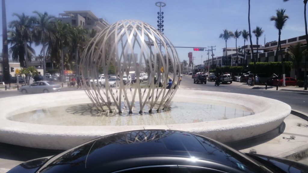 Mazatlán, Sinaloa.- Desde el pasado 16 de octubre del año pasado en que fue inaugurada, la esfera de acero con forma de Perla y que se haya en la glorieta frente al Valentinos, sigue sin funcionar la fuente, y solamente es iluminada con luces en la noche, pero no echa agua.