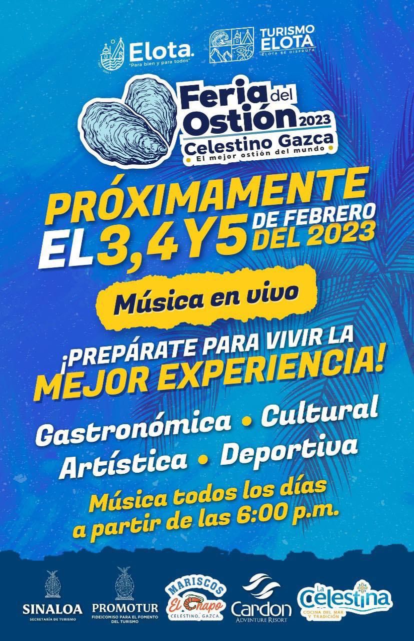 Celestino Gazca, Elota, Sinaloa.- Después de dos años de ausencia, autoridades federales, estatales y municipales se reunirán mañana viernes 03 de febrero para llevar a cabo la inauguración de la 5ta edición de la Feria del Ostión 2023, que se celebrará este fin de semana en la comunidad turística de Celestino Gazca, en el municipio de Elota.