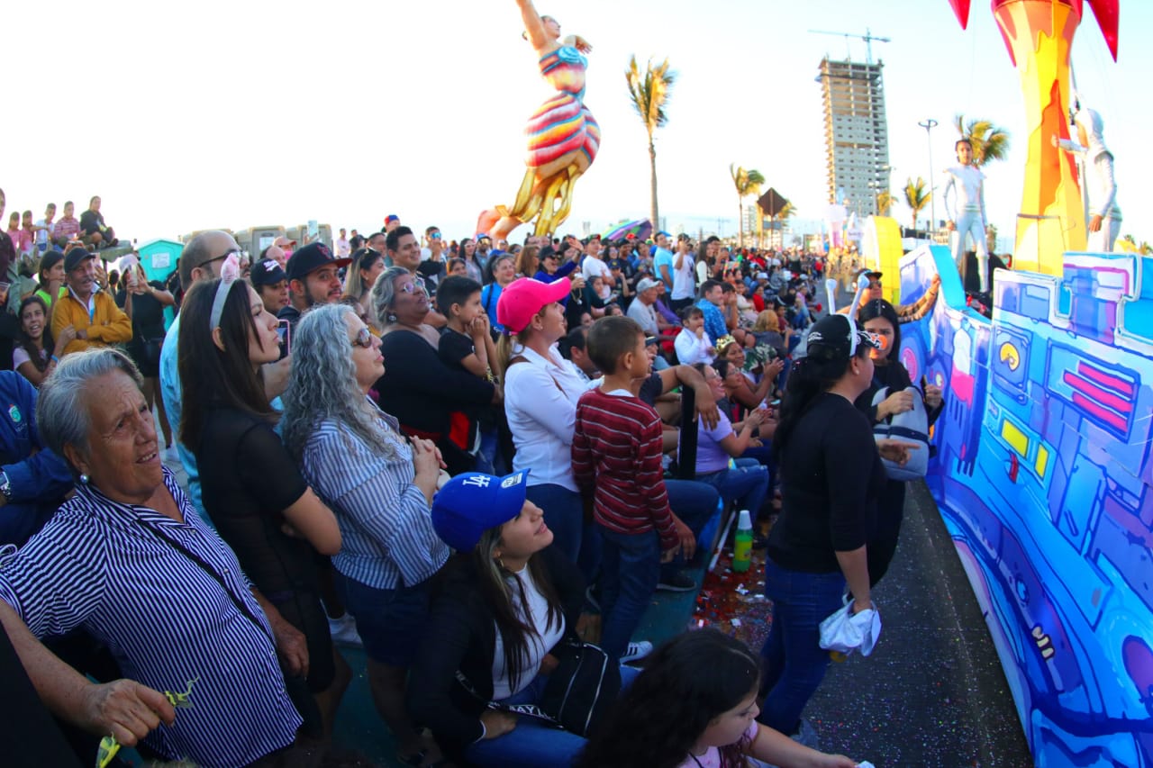 Mazatlán, Sinaloa a 21 de febrero del 2023.-Familias porteñas y turistas se dieron cita este martes a lo largo del malecón para disfrutar del segundo desfile de carrozas alegóricas del Carnaval Internacional de Mazatlán “Déjavú, 125 años de tradición” 2023.