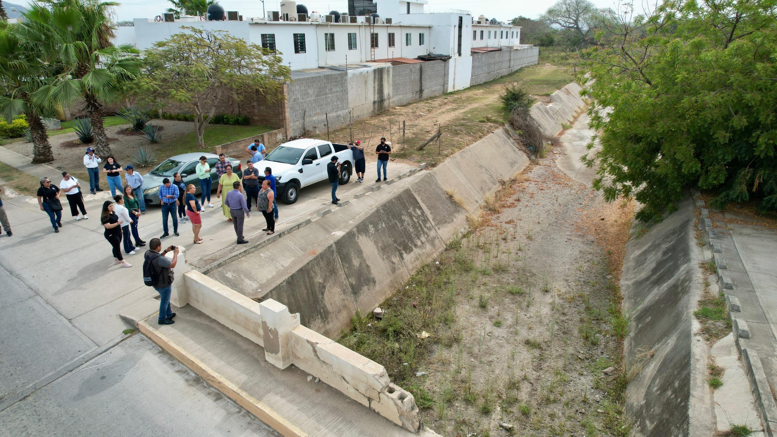 La reunión tuvo lugar en el canal pluvial ubicado en el acceso principal del fraccionamiento, donde autoridades locales y habitantes se congregaron para evaluar la situación actual y buscar soluciones efectivas.