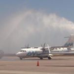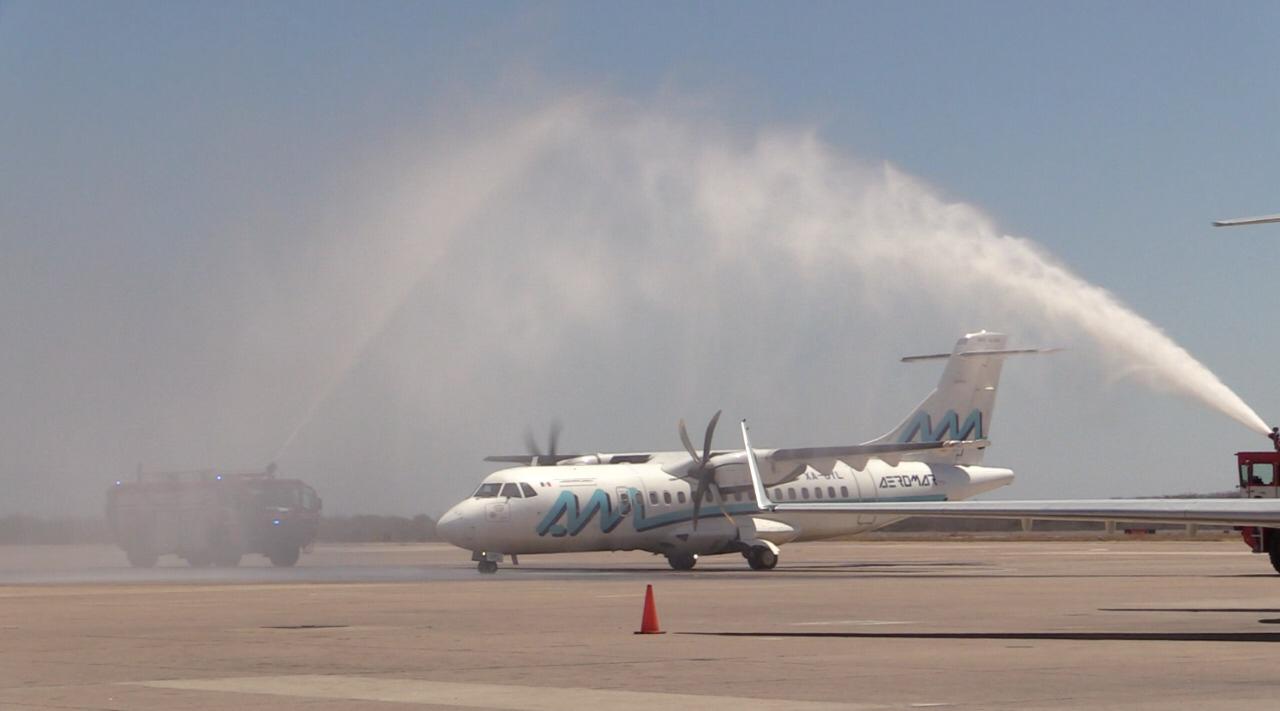 El primer vuelo con 42 asientos, fue recibido por el secretario de Desarrollo Económico, Turismo y Pesca, Luis Eusebio Terán Tirado, así como por el secretario de Turismo en Sinaloa, Óscar Pérez Barros.
