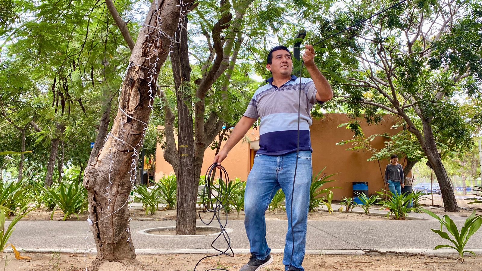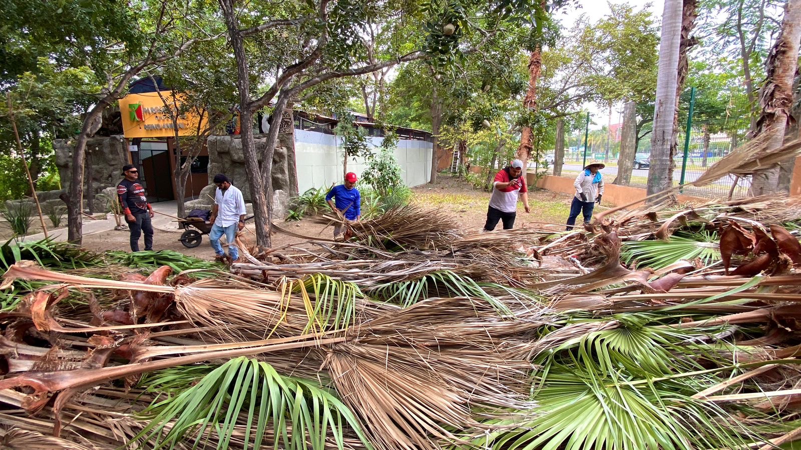 Cuadrillas de parques y jardines trabajan exhaustivamente en el mantenimiento del área con poda de malezas, palapeo, poda de árboles, fumigacion, retiro de arboles y palmas secas así como la colocación de nochebuenas.
