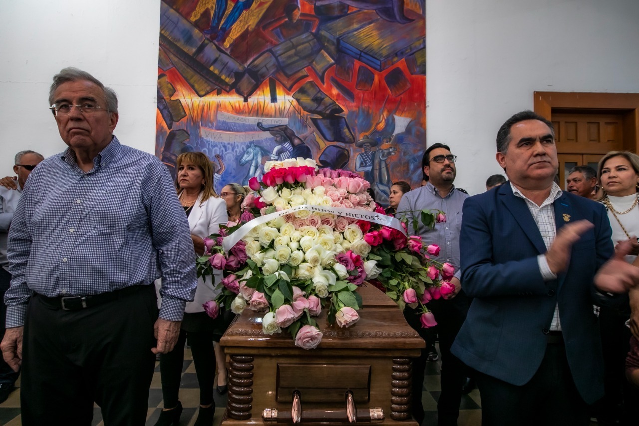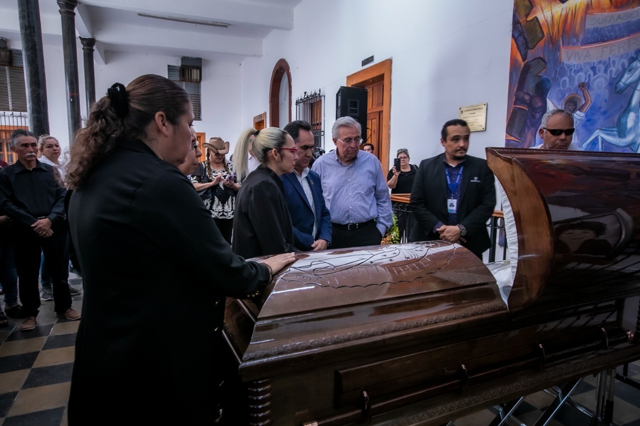 Tras montar guardia de honor en el féretro, el Ejecutivo Estatal brindó sus condolencias a toda la familia de Quiñónez Payán, reconociendo ante la comunidad universitaria encabezada por el Rector de la UAS, Jesús Madueña Molina, su amplia contribución en la consolidación de los derechos de los trabajadores, cuyos beneficios hasta el día de hoy se encuentran plasmados en el Contrato Colectivo de Trabajo.
