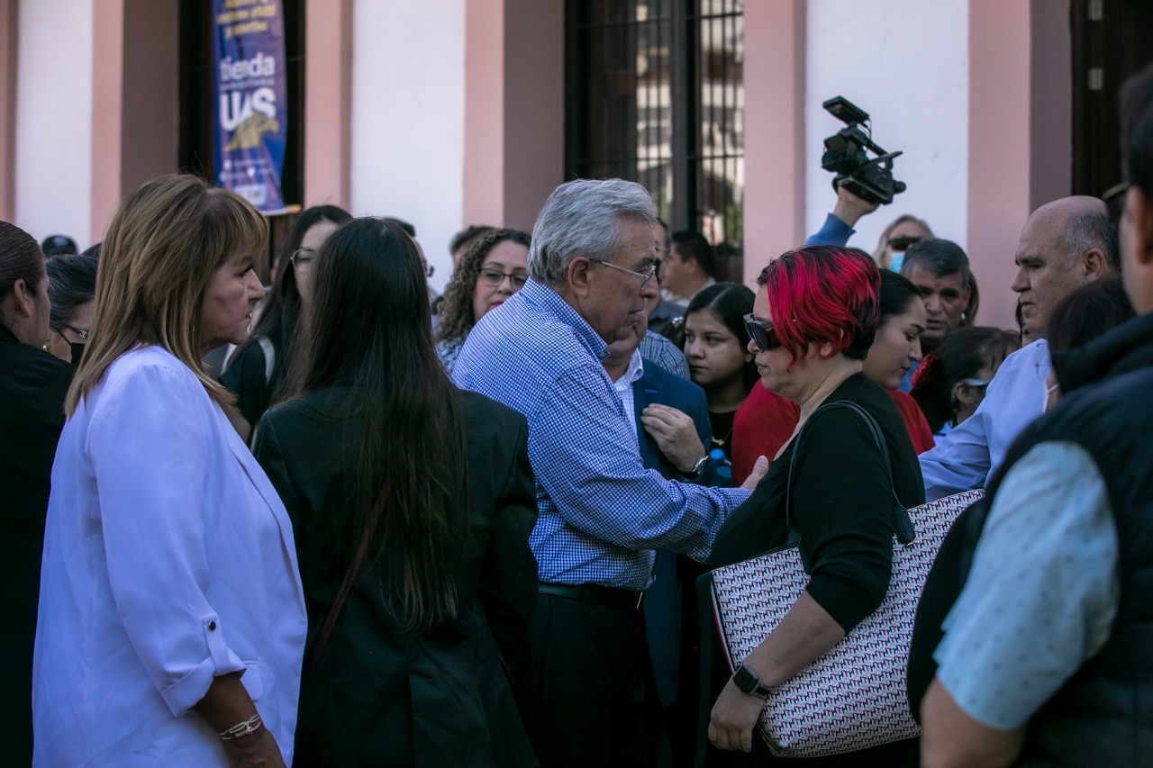 La tarde de este lunes, el Gobernador Rubén Rocha Moya acudió al Edificio Central de la UAS, donde se realizó un sentido homenaje luctuoso a la reconocida académica María del Rosario Quiñónez Payán, conocida popularmente como «Chayito Quiñónez», quien además de encabezar múltiples luchas en defensa de los trabajadores universitarios, fue Secretaria General de la Sección Administrativos del Sindicato General de la Universidad Autónoma de Sinaloa.