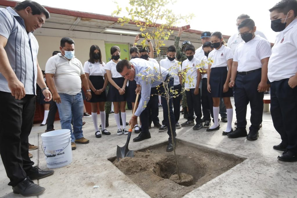 El Gobierno Municipal hizo entrega de una bandera y su asta, además varios alumnos con excelencia académica recibieron reconocimiento, con un kit de artículos de Acuario Mazatlán y finamente realizaron la plantación de un árbol, como parte del programa de reforestación en las escuelas.