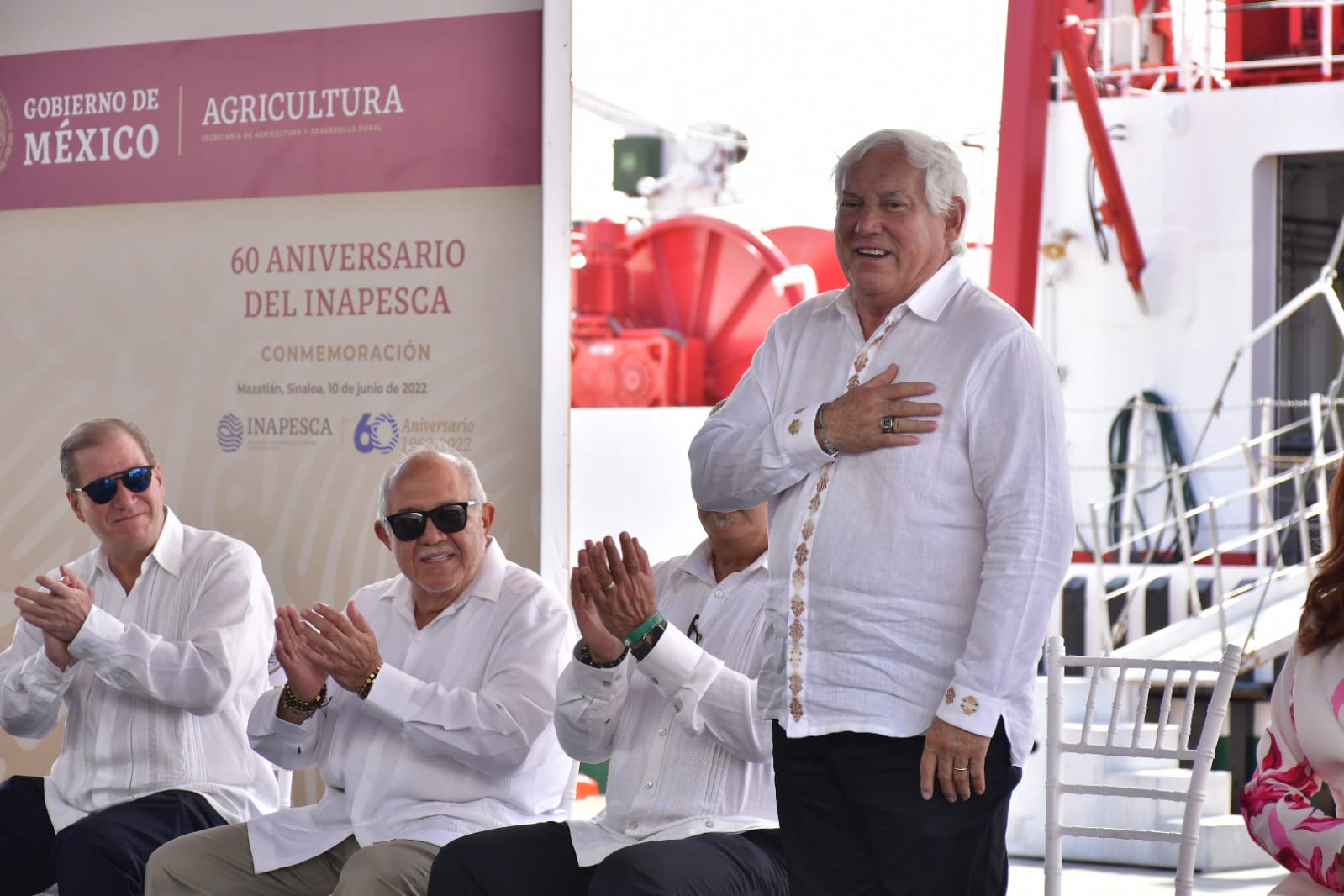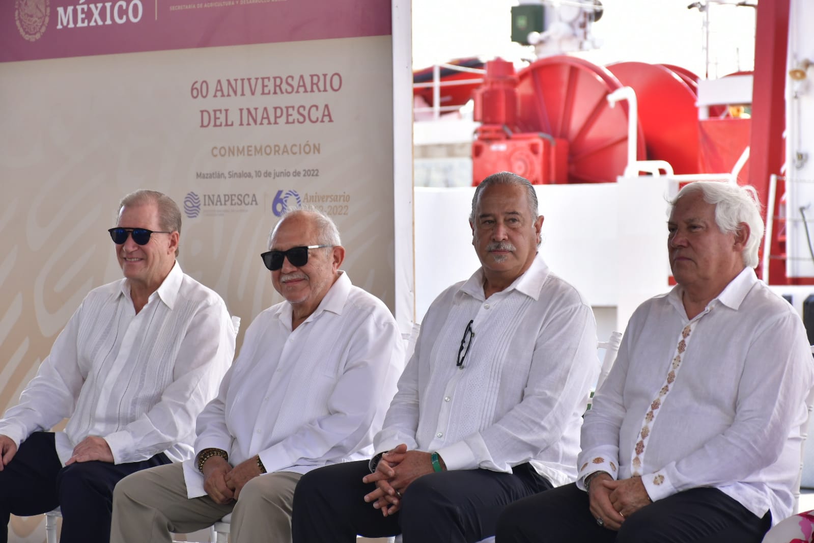 A la celebración del 60 aniversario de Instituto Nacional de Pesca y Acuacultura, asistieron el Secretario de Agricultura y Desarrollo Rural Federal, Víctor Manuel Villalobos Arámbula; el Director General del Instituto Nacional de Pesca y Acuacultura (Inapesca), Pablo Arenas Puentes; en representación del Gobernador de Sinaloa, Rubén Rocha Moya, estuvo la Secretaria de Pesca, Flor Emilia Guerra Mena; el Presidente del Grupo Pinsa, Leovigildo Carranza Beltrán, Julio Carranza Bolivar, hijo del Doc. Jorge Carranza Fraser y su familia, además, Isaac Rojas González, Director de Investigación Pesquera en el Pacifico e invitados especiales.