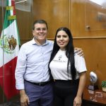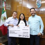 El munícipe en compañía del Secretario de Desarrollo Económico Turismo y Pesca, Ricardo Velarde Cárdenas, entregó el apoyo de Elevando Maz emprendedores, González dio un cheque por 15 mil pesos a la emprendedora.