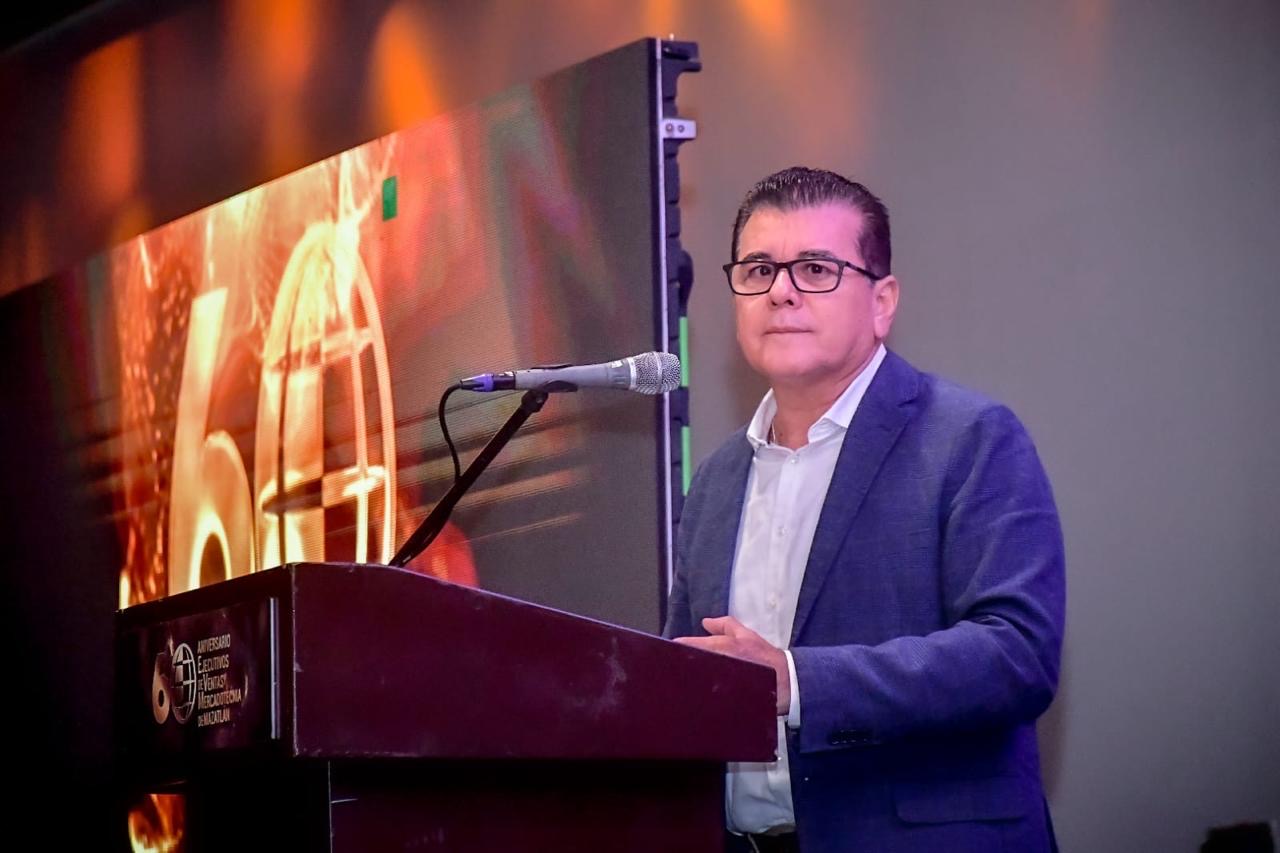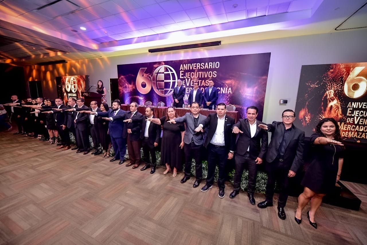 Mazatlán, Sinaloa, 18 de septiembre del 2024.- En el marco del 60 aniversario de la Asociación de Ejecutivos de Ventas y Mercadotecnia de Mazatlán, el Alcalde de Mazatlán, Edgar González, destacó la labor fundamental de quienes representan el rostro del puerto en el ámbito de las ventas.