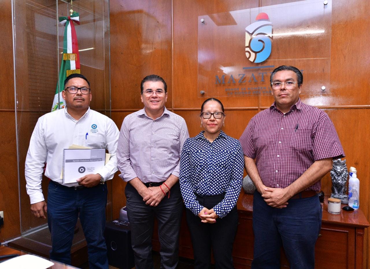 Mazatlán, Sinaloa, 4 de noviembre de 2022.- Este viernes el Presidente Municipal de Mazatlán, Edgar González Zatarain, recibió en su despacho a integrantes de Observatorio Ciudadano.
