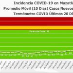 El Semáforo de Casos Nuevos Diarios se ubicó hoy en los 10 grados Covid, promedio de los 10 últimos días, mientras que el Semáforo de Casos Activos Diarios registró los 55 pacientes en promedio de los 10 últimos días.