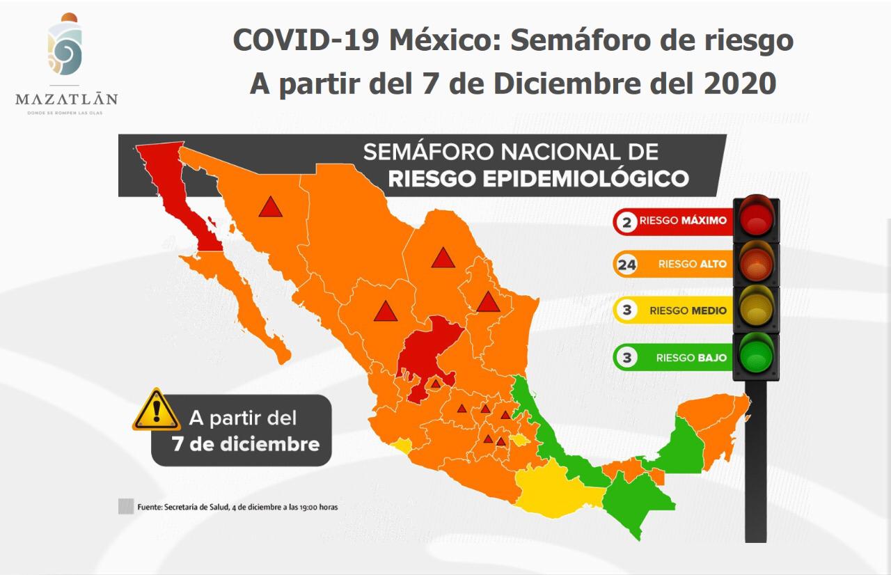 La Secretaría de Salud del Gobierno Federal anunció que a partir del lunes 7 de diciembre, Sinaloa regresa al Semáforo Naranja, debido a que en las últimas semanas el estado ha mostrado un aumento de casos de Covid-19.