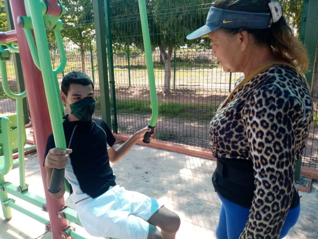 “Ahorita están suspendidas las actividades por la pandemia del Covid 19, pero encontramos en la Unidad Deportiva Cuchupetas un lugar ideal para acudir y al personal del Instituto Municipal del Deporte con las puertas. Aquí empezó sus sesiones de entrenamiento”, compartió mientras apoyaba a su hijo en los aparatos de ejercicio.