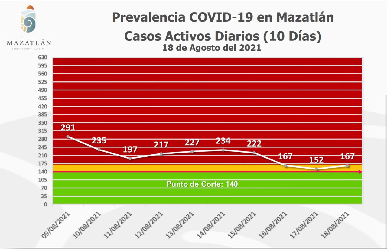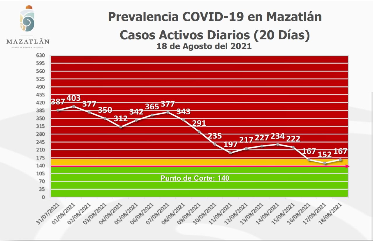 Mazatlán.- Este jueves, la ciudad amaneció con 167 casos activos de Covid-19, por lo que el Gobierno Municipal reiteró el llamado a la población para que refuerce las medidas preventivas contra la pandemia, dijo Cristian Castillo López.