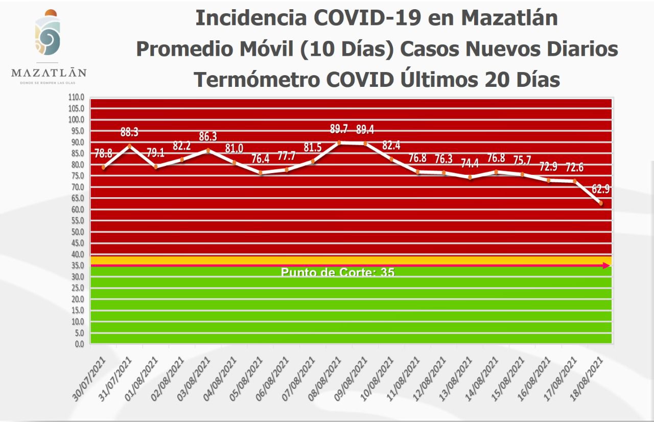 El encargado de Protocolos y Sanidad del Gobierno de Mazatlán comentó que el puerto sigue en color rojo del Semáforo Epidemiológico Estatal y se mantiene como el que menos casos activos de Covid-19 tiene de entre los cuatro con más población en el estado.