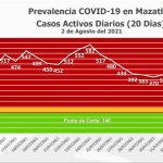 Mazatlán.- La noche del lunes la ciudad registró un leve descenso en los casos activos de Covid-19 y este martes amaneció con 377, sin embargo, el Gobierno Municipal mantiene su llamado a la población a no bajar la guardia en las medidas preventivas contra el virus Sars-Cov-2.