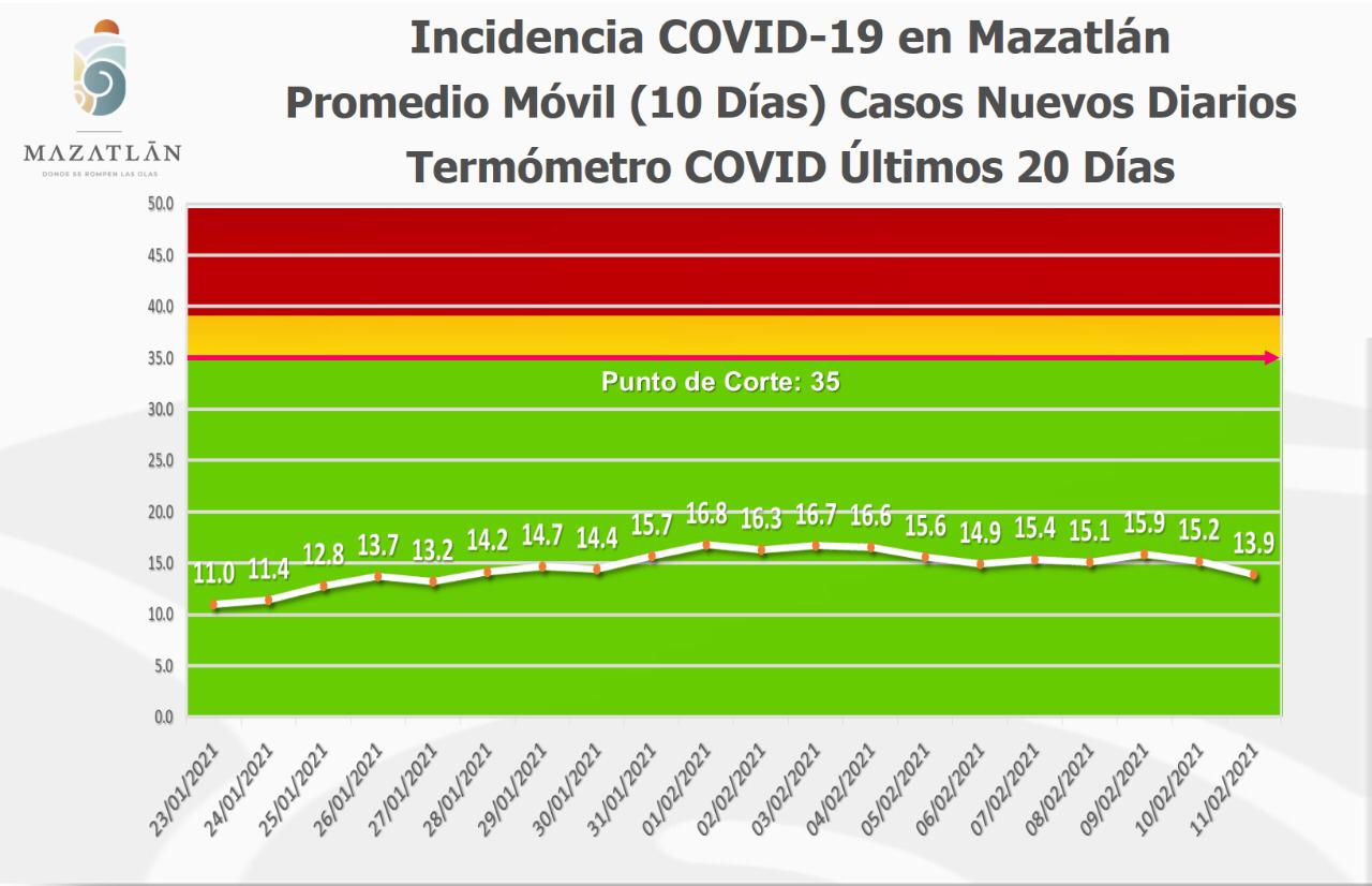 El también Jefe de Información Interna en el Oficina de Presidencia comentó que el Termómetro de Casos Nuevos Diarios del Gobierno de Mazatlán, por segundo día consecutivo registró un descenso y se ubicó en los 13.9 grados Covid.