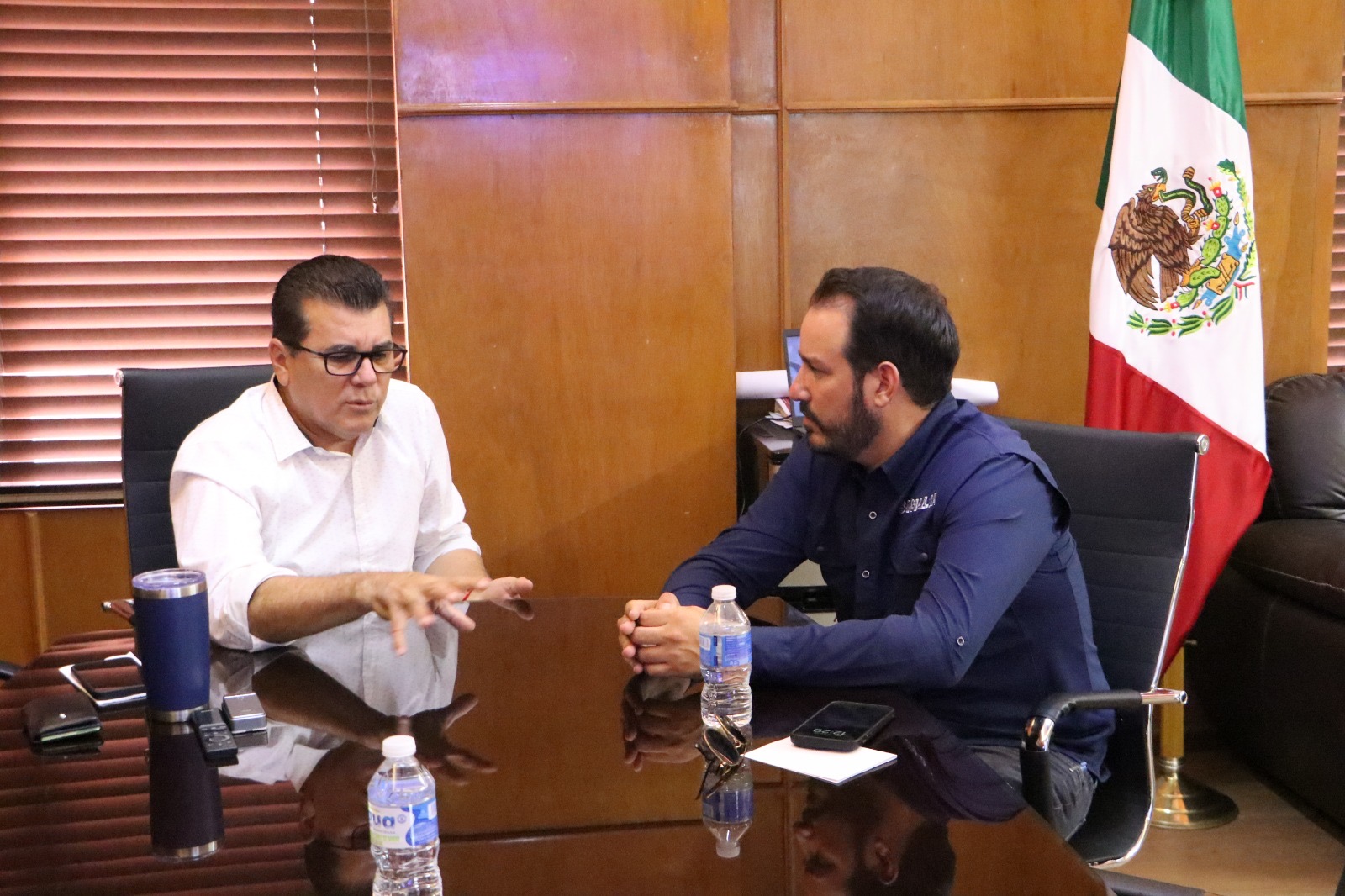 Mazatlán, Sinaloa, 31 de julio de 2024.- Con el objetivo de reforzar las medidas que ya se tienen para recibir a los turistas de la mejor manera en estas vacaciones de verano, el Alcalde Edgar González se reunió este miércoles con el encargado de despacho de la Secretaría de Turismo, Ricardo Velarde Cárdenas.