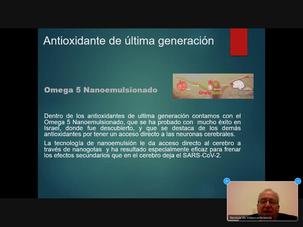 “El Omega 5 extraído del aceite de la semilla de la granada roja, es el único Omega nanoemulsionado en el mercado y el único que atraviesa la barrera hematoencefálica por lo que, crea un efecto preventivo de la muerte neuronal producida por el SARS-Cov-2”, comenta el académico de la UNAM.