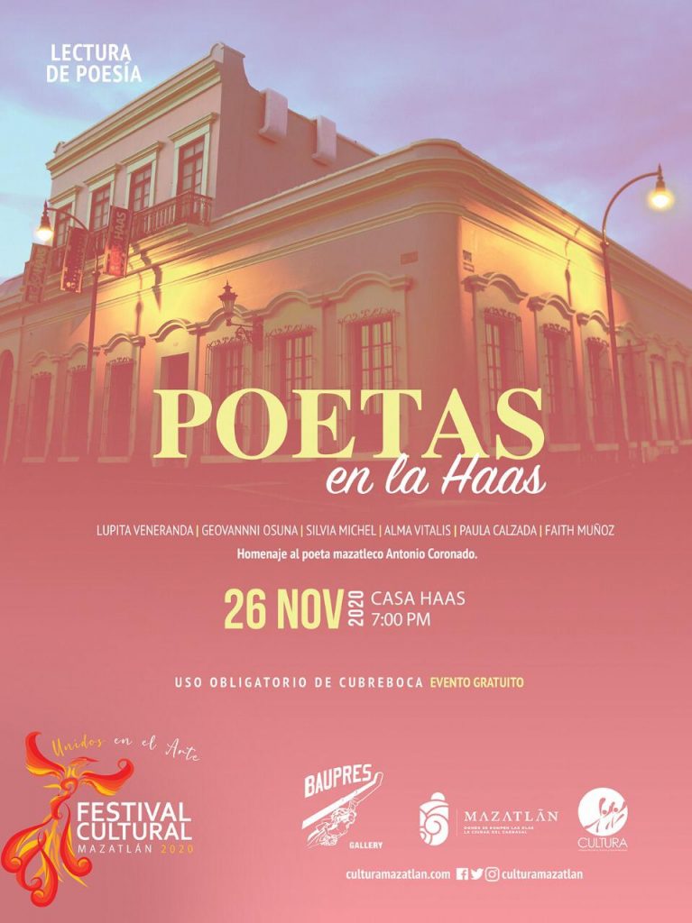 La entrada a “Poetas en la Haas”, una iniciativa en conjunto del Instituto Municipal de Cultura, Turismo y Arte de Mazatlán y Centro Cultural Bauprés, es gratuita.