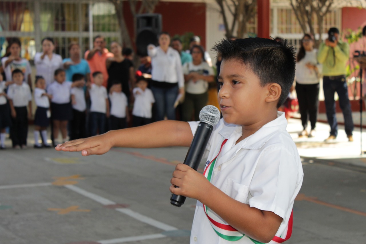 El Presidente Municipal encabezó esta mañana el último Lunes Cívico del ciclo escolar 2018-2019, en el Jardín de Niños «Romana de la Peña», ubicado en el fraccionamiento Jacarandas.
