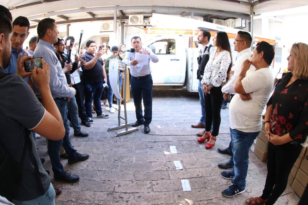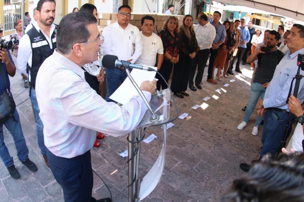 Tras el anuncio que hizo que el Alcalde de Mazatlán del programa en patio del Ayuntamiento dio a conocer que los empresarios Guillermo Romero y Federico Domínguez son los primeros en sumarse a esta acción que lanzó el Gobierno Municipal por ello recibieron los equipos de manera simbólica en tanto se concreta el procedimiento de donación de los equipos.