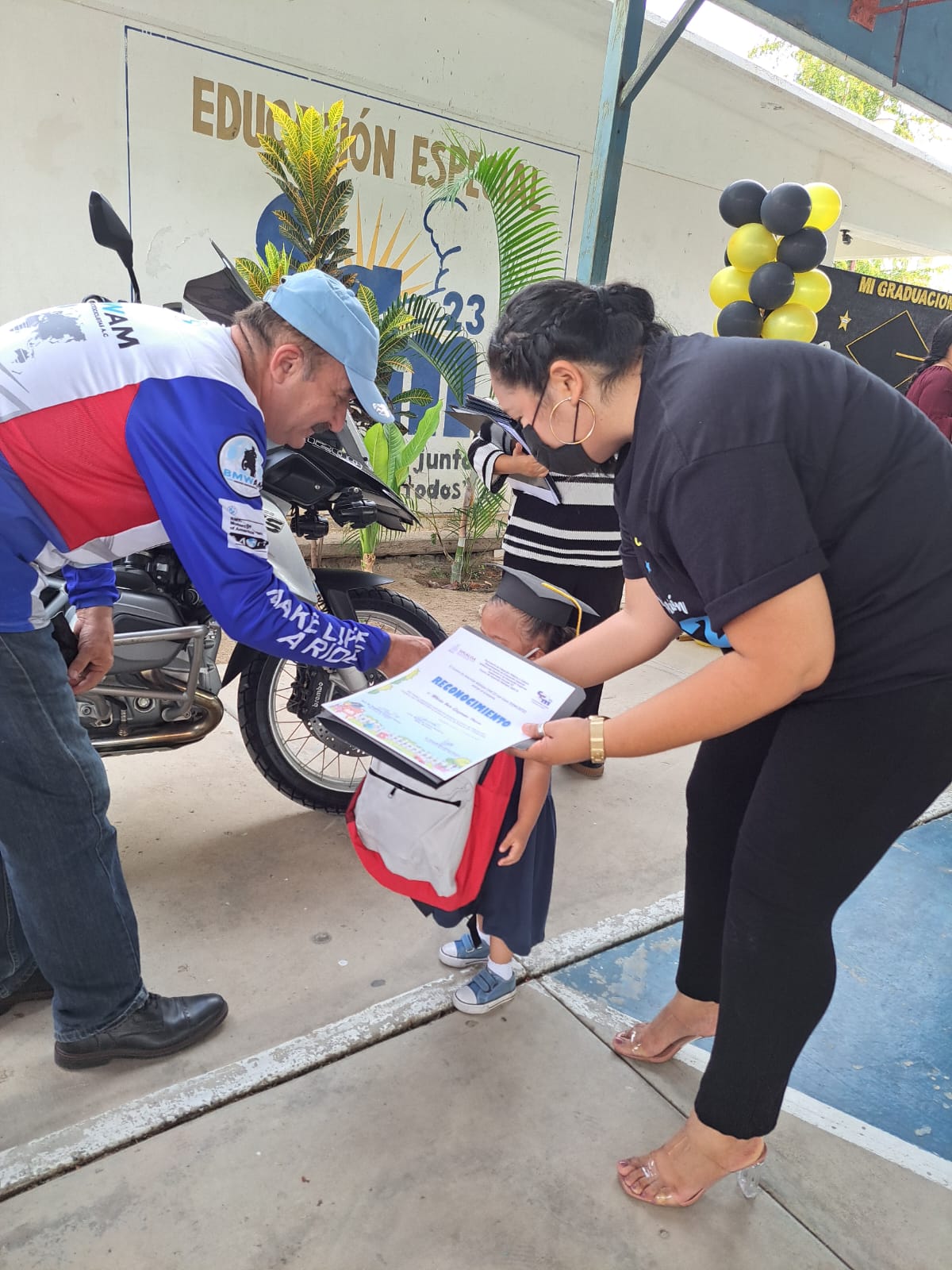 Mazatlán, Sinaloa 14 de julio de 2022.- Un día inolvidable es el que vivieron más de 60 alumnos del Centro de Atención Múltiple Número 23 (CAM 23), al ser apadrinados por el Club BMW Amigos Motociclistas de Mazatlán A. C.