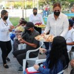 Personal de DIF municipal encabezados por la Directora General, Dora Luz Camacho Llamas, ofrecieron sándwiches, fruta, agua y bebidas hidratantes para hacer más amena la espera de los interesados.