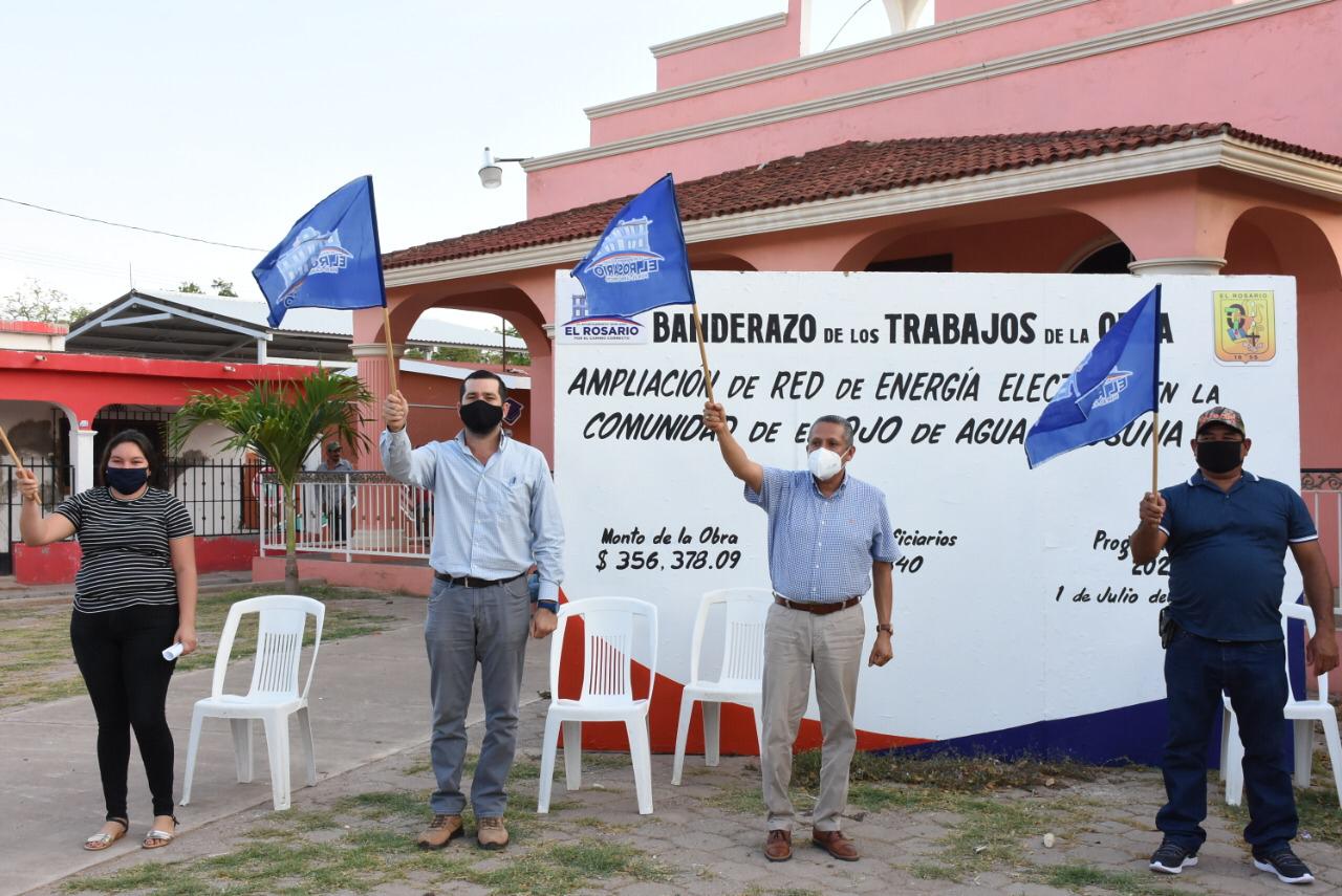 El Rosario, Sinaloa, 02 de julio de 2020.- Con una inversión de 356 mil 378 Pesos, y beneficio directo a 340 personas, este jueves dio inicio la ampliación de red de energía eléctrica en la comunidad de Ojo de Agua de Osuna.