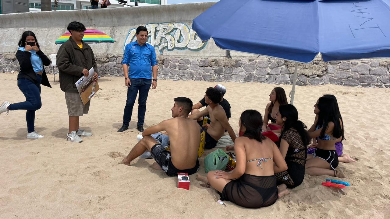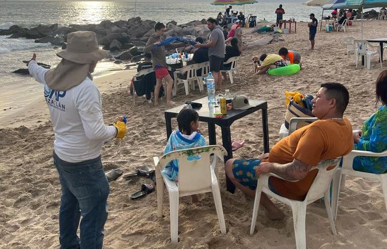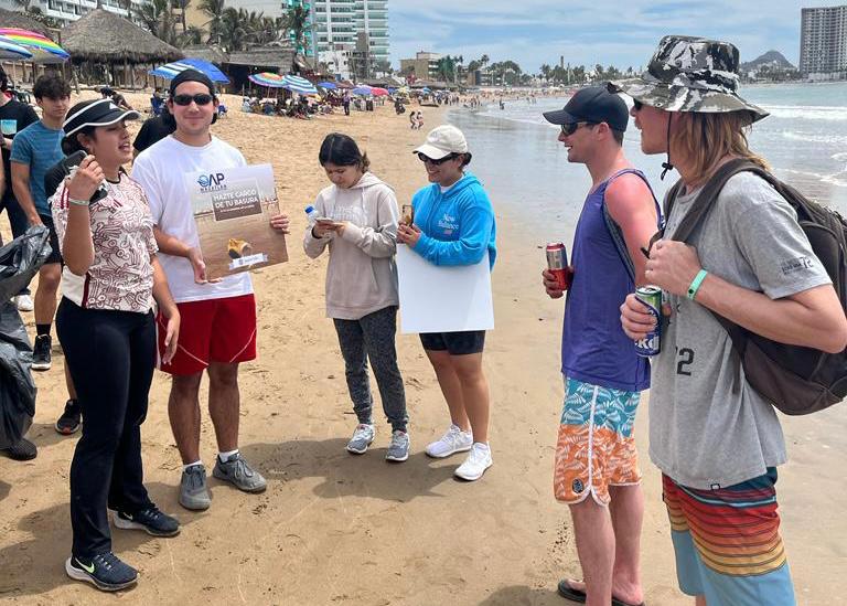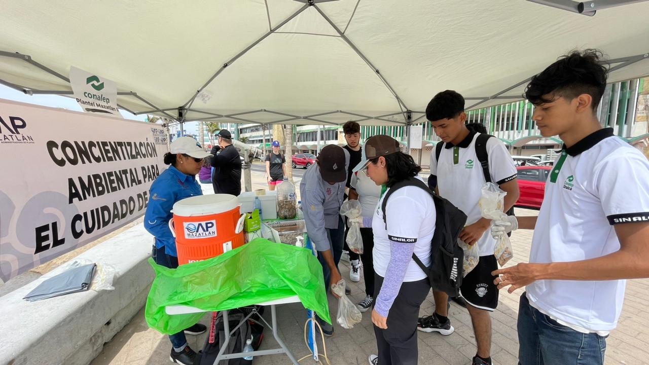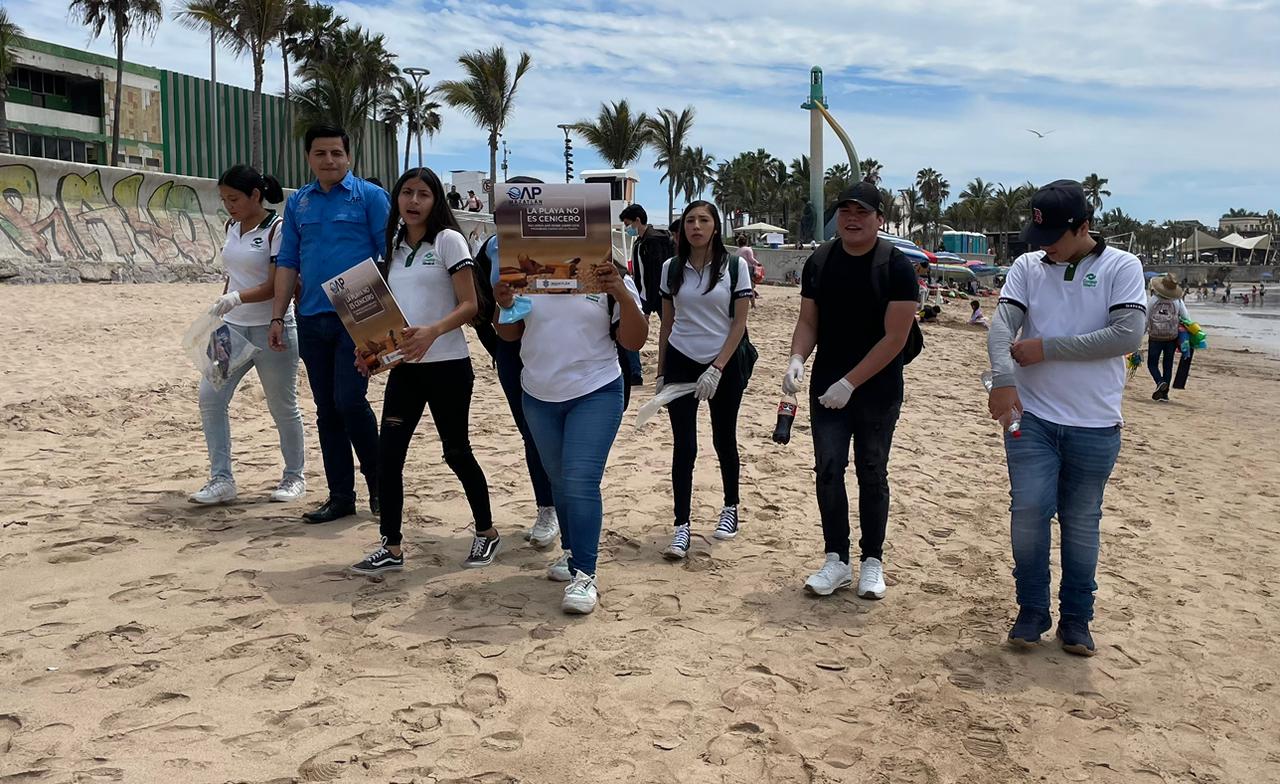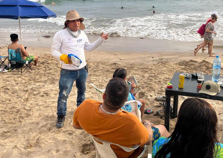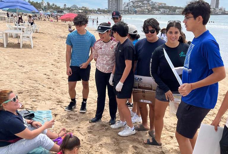 Durante los días del periodo vacacional se refuerza el tema de educación ambiental en las playas, a través de jóvenes estudiantes del Conalep Plantel Mazatlán II y del Instituto Anglo Moderno, quienes llevan el mensaje para influir en que los bañistas mantengan las playas limpias