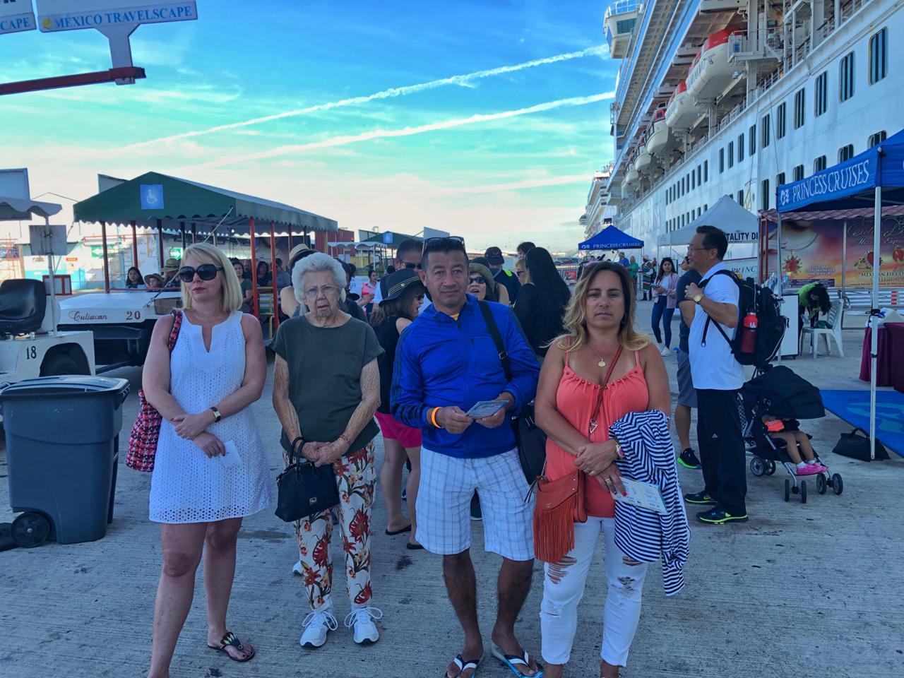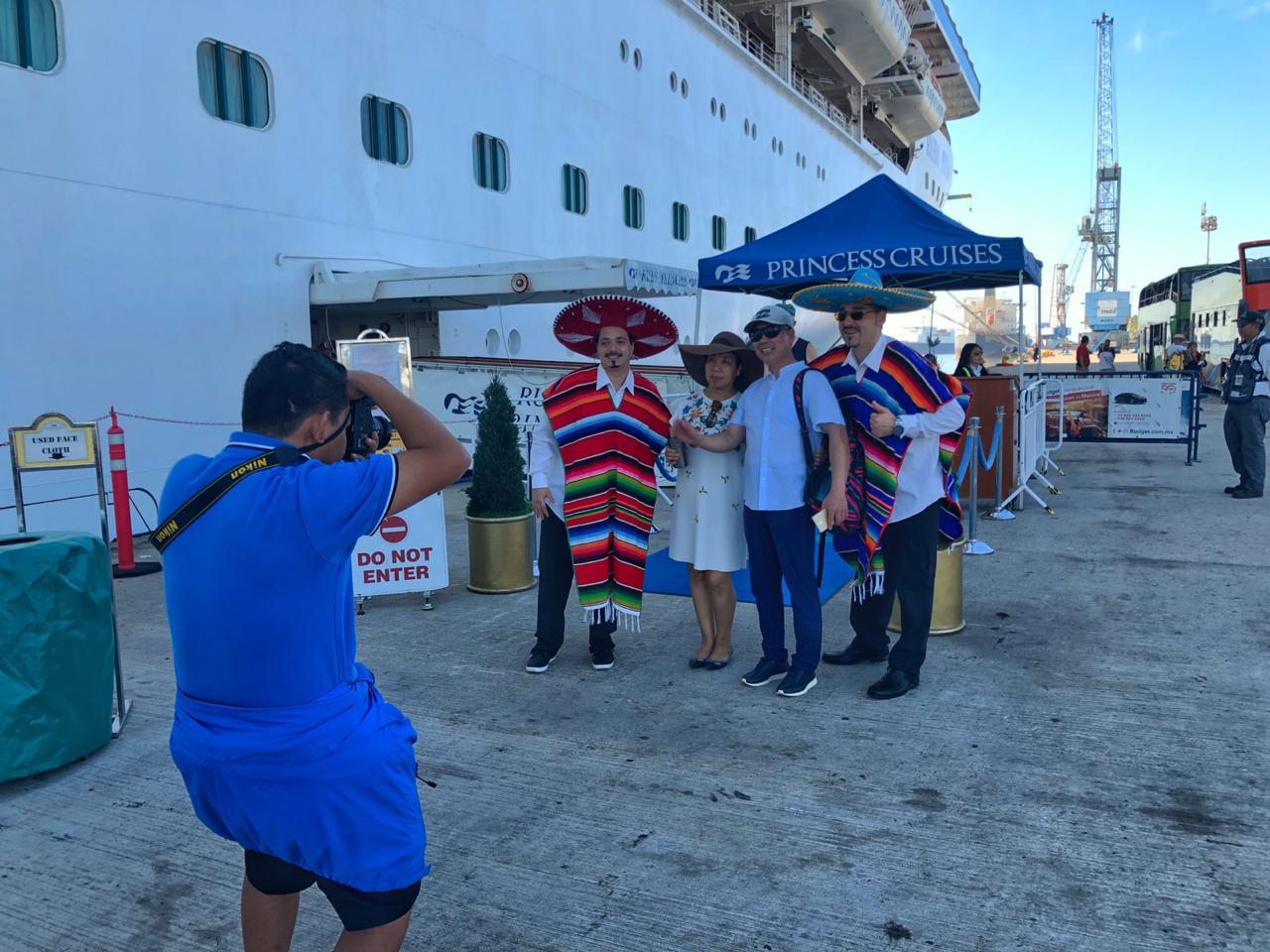 El primero en hacer su entrada al puerto fue el Ruby Princess, a las 06:00 horas aproximadamente, con 3,133 pasajeros y 1,176 tripulantes. De acuerdo a su ruta marítima, continuará su viaje con destino a Puerto Vallarta a las 18:00 horas.