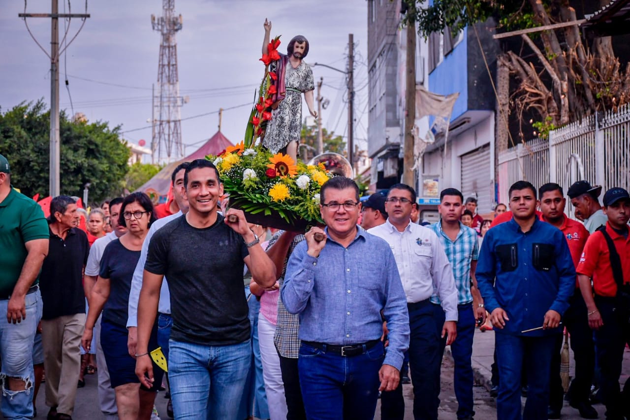 Al terminar la referida misa, Edgar González cargó a San Juan junto con los regidores Reynaldo González Meza, Martín Pérez Torres y el síndico de Villa Unión, Leopoldo Guerrero Osuna.