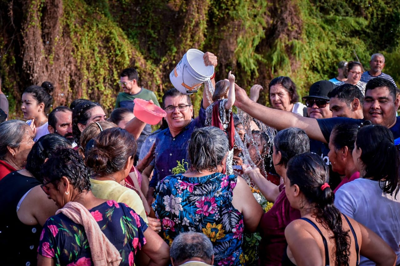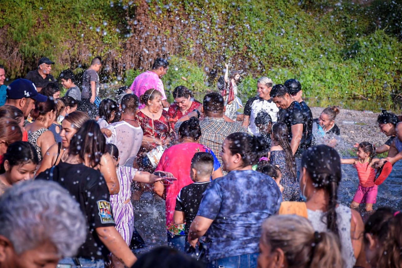 Al llevar al río, Edgar González y la presidenta del sistema DIF municipal, María Teresa al igual que cientos de personas, se metieron al río para celebrar a San Juan y además pedirle un buen temporal de lluvias y buena cosecha pues este es el principal objetivo por el cual se festeja a San Juan Bautista.